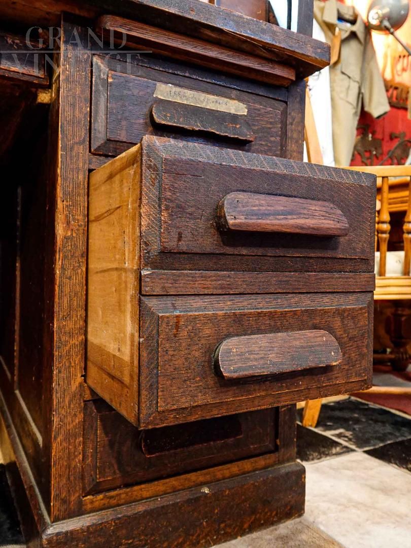 Massive and full of old-world charm, this vintage American Western roller desk exudes character with every detail. Featuring multiple drawers and compartments, it is perfect for storing and organizing in style.