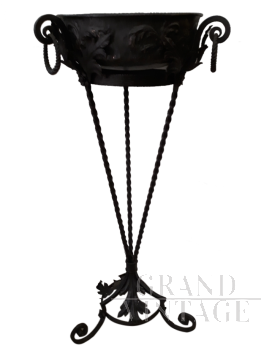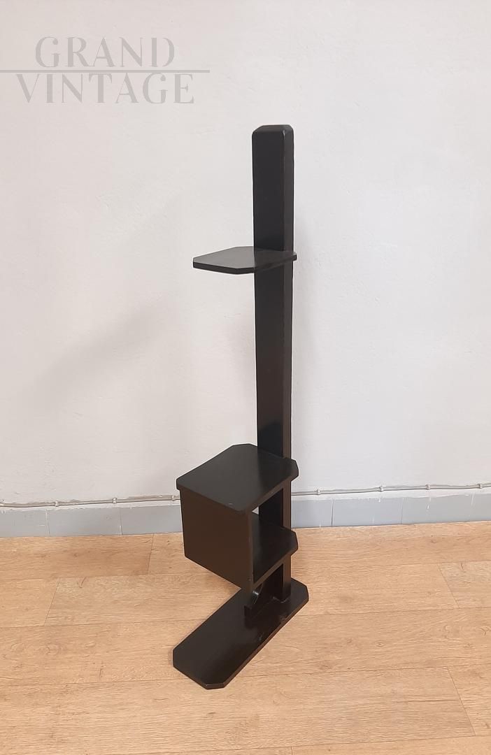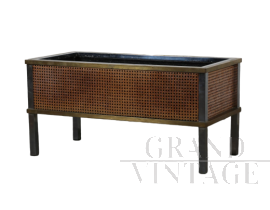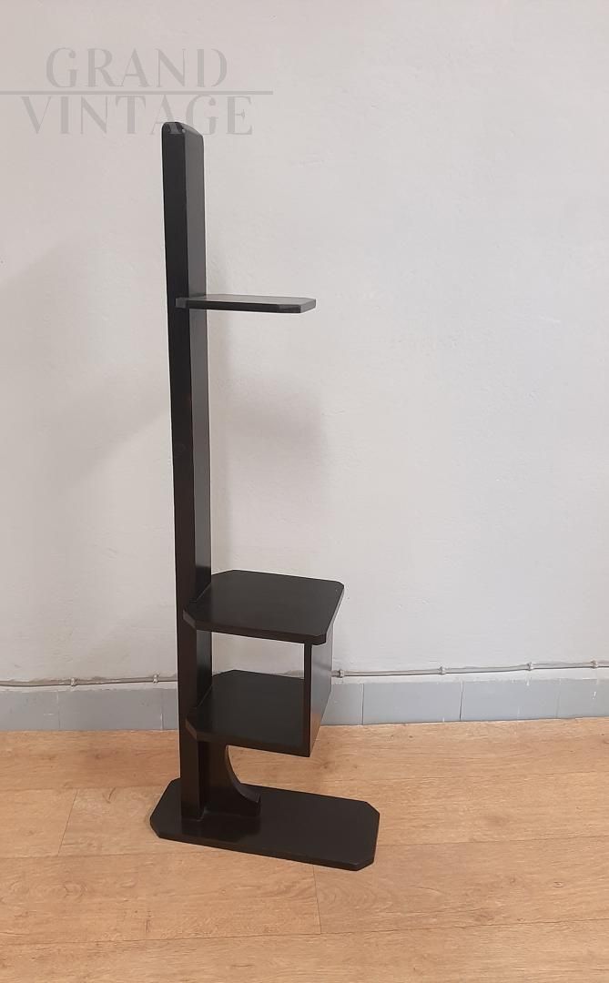 Vintage planter from the art deco period in black lacquered walnut wood, original from the 1940s. The planter has been restored and is ready for use, it may show natural signs of aging.