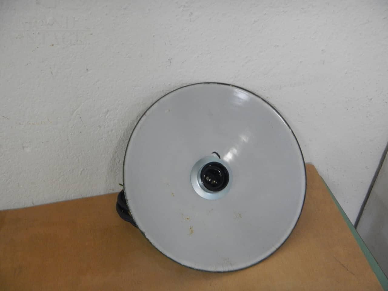 1940s industrial saucer suspension lamp in green metal