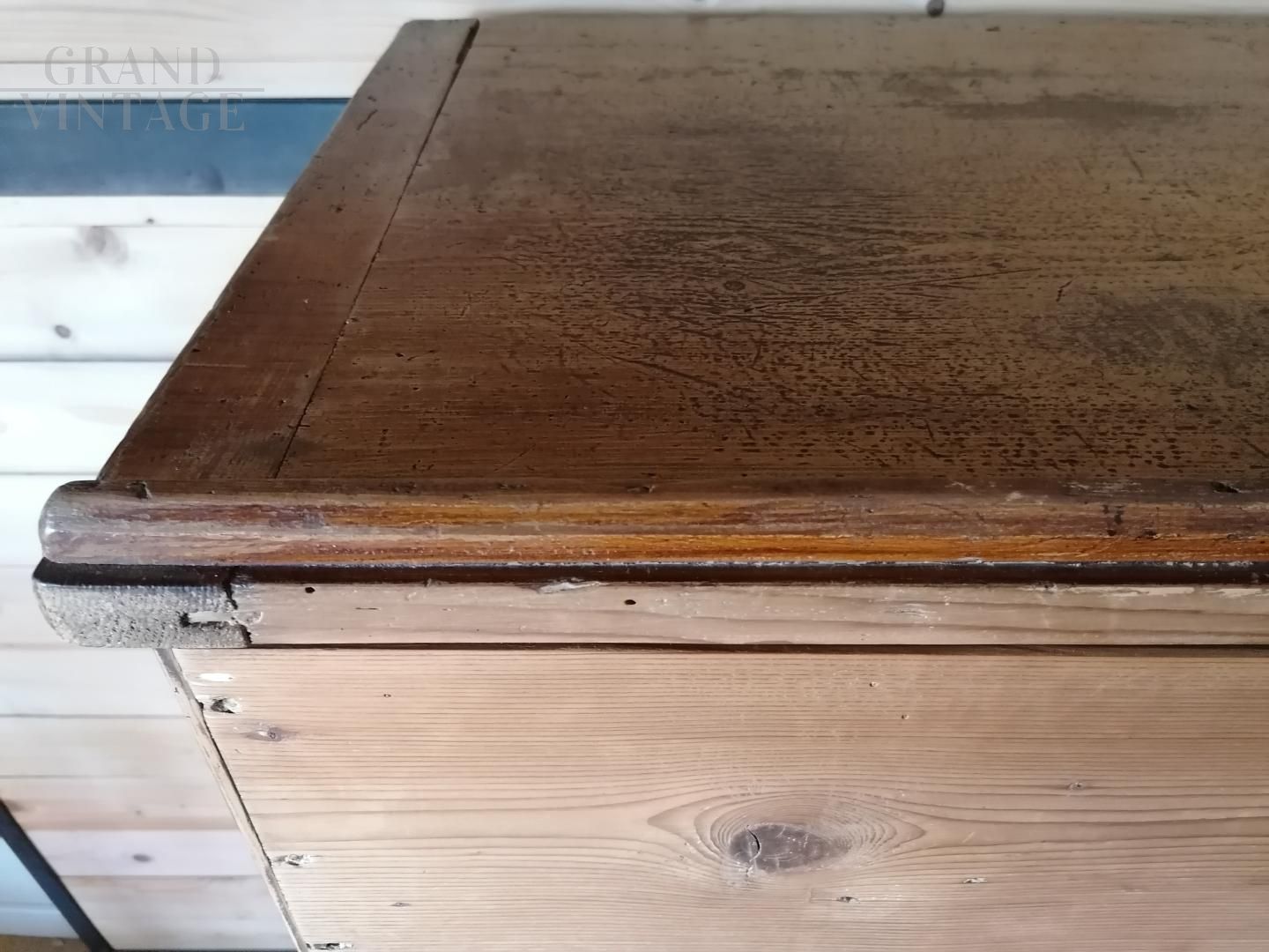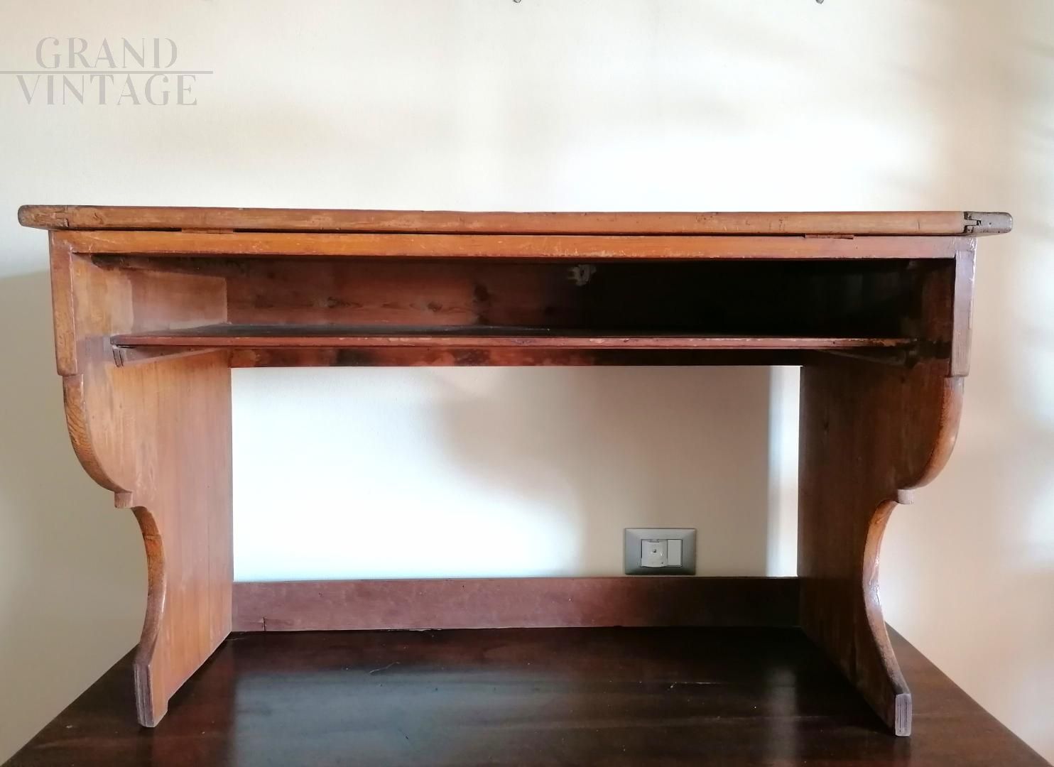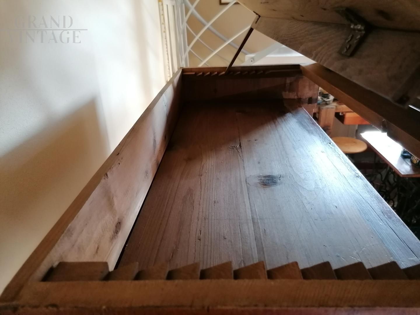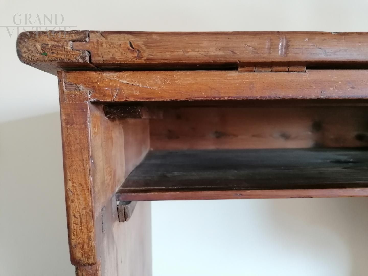 The bench is made of solid fir wood, with a folding top with adjustable inclination by means of a stop, complete with storage shelf and footrest.