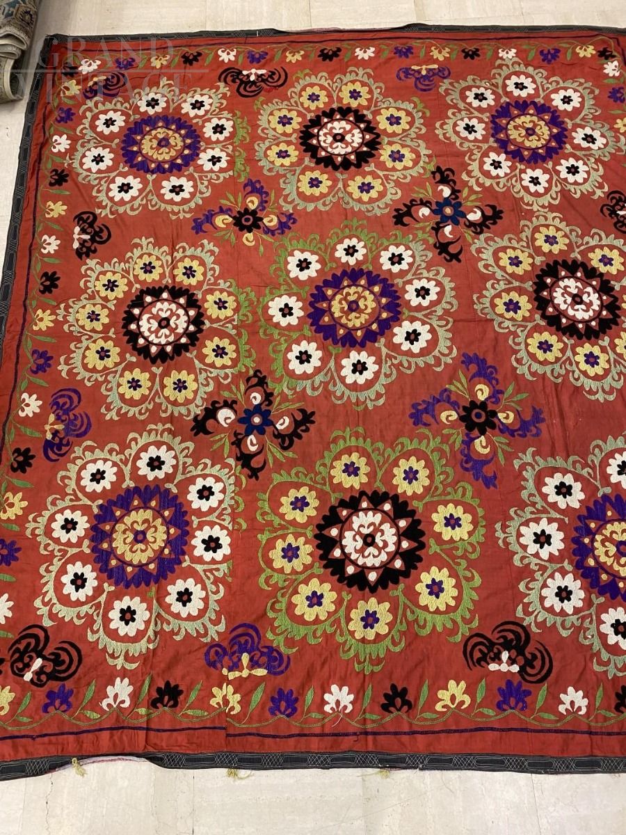 1940s Sousani tapestry made in Turkmenistan in silk and cotton.