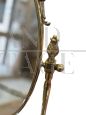 Refined dressing table with an elegant and timeless design, an emblem of the sophisticated taste of the 50s. The structure is made of polished brass, which gives a touch of luxury and brightness, while the transparent glass tops add visual lightness and practicality. The mirror, with clean and harmonious lines, completes the ensemble, making this dressing table an ideal piece of furniture for vintage or contemporary environments. An object with a timeless style that combines functionality and refined design. Equipped with lighting. Dimensions. 93 cm length, 43 cm depth, 120 cm height.