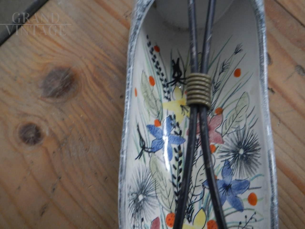 Ceramic breadstick holder from the Bonetti Parma company, 1950s, richly hand-decorated with flowers and with metal support.