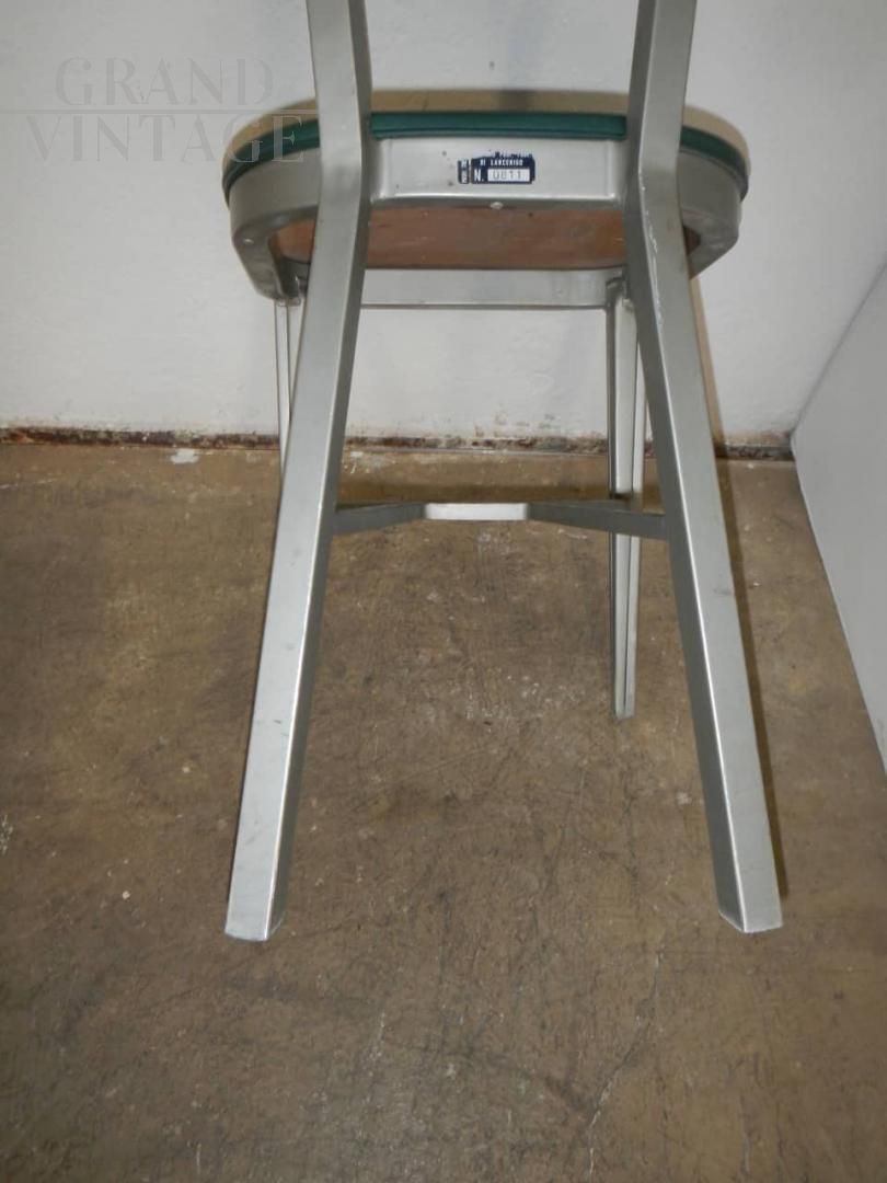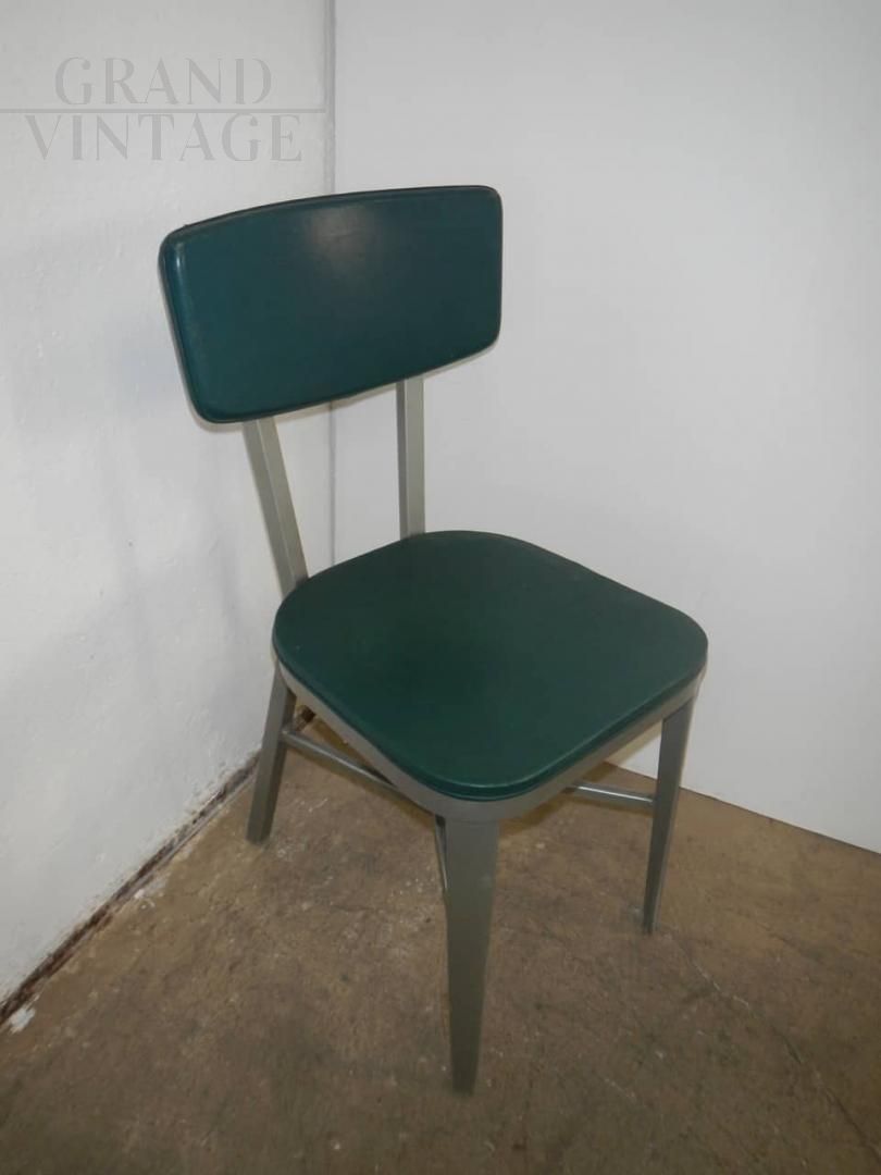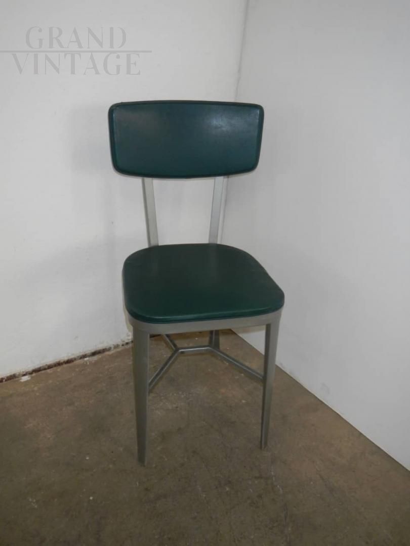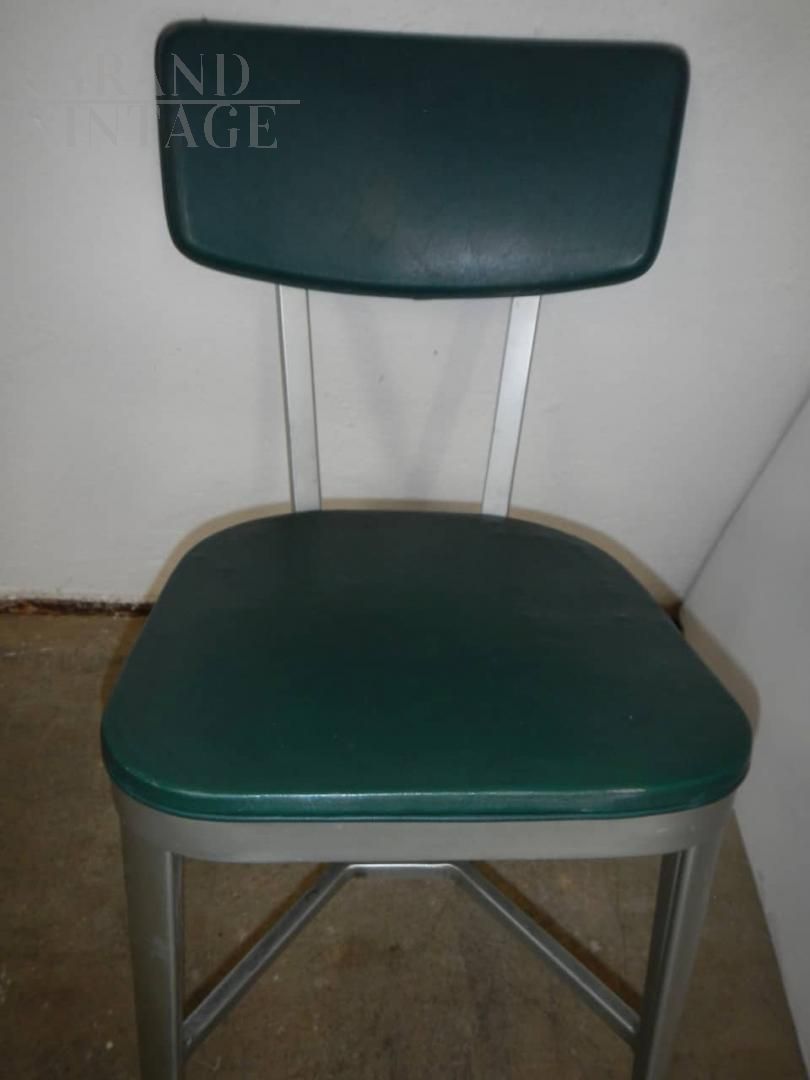 Vintage office chair with a particular design, with aluminum structure and seat and back in imitation leather, 1950s.