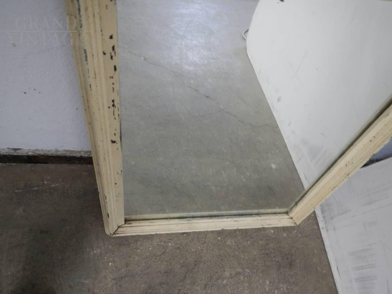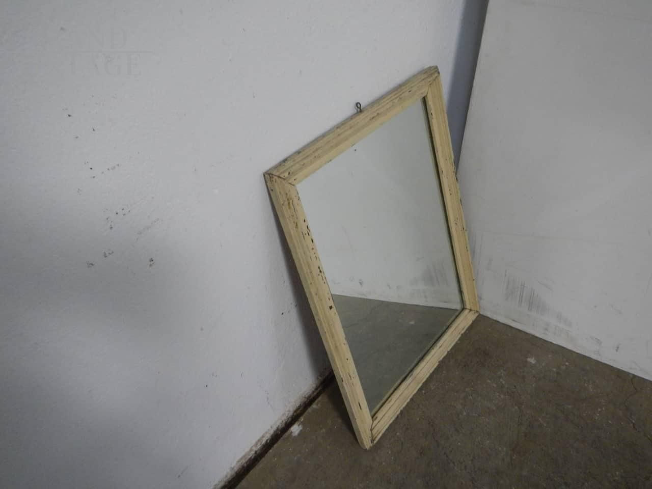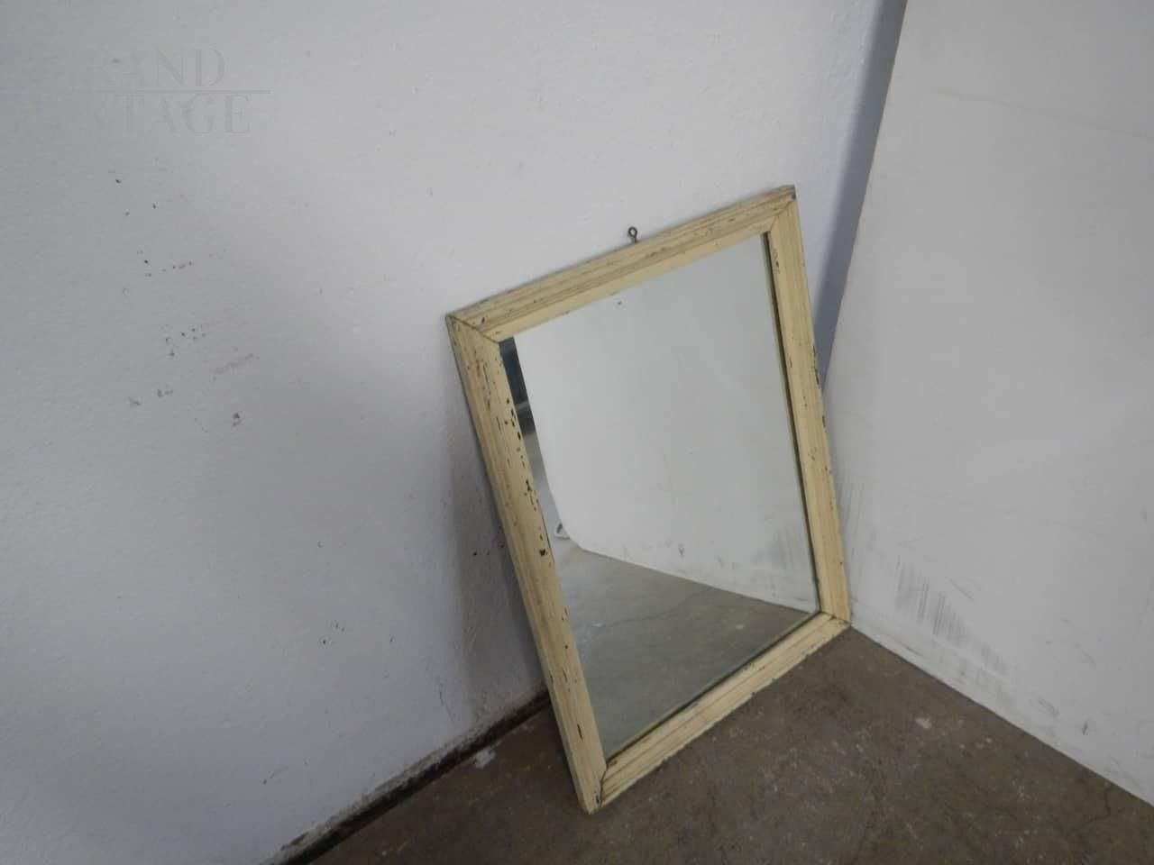 1950s vintage wall mirror with fir frame lacquered in cream color, with original hook for hanging. In good condition.
