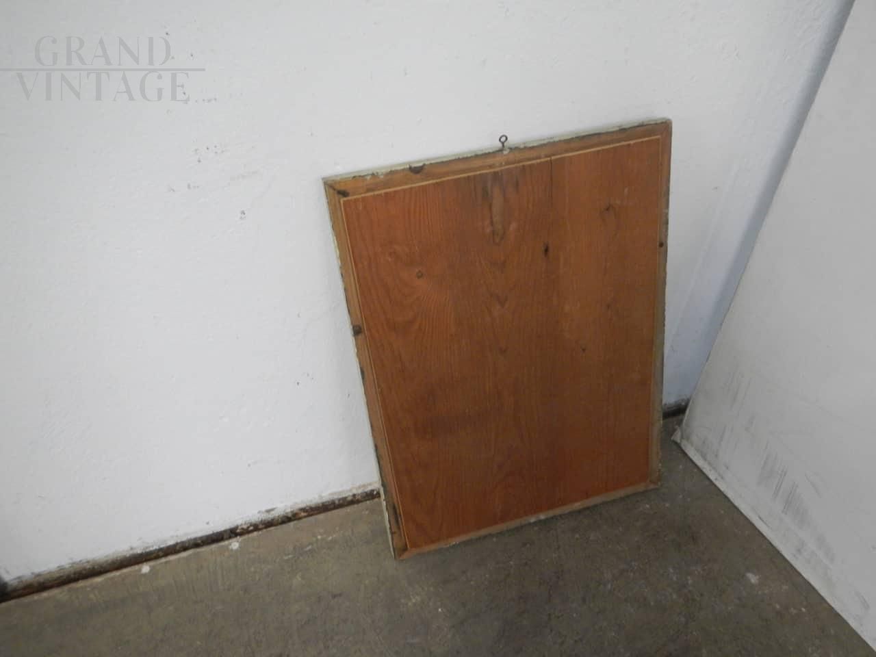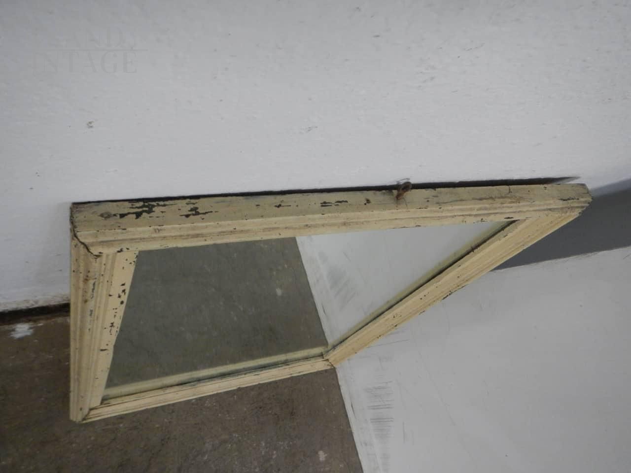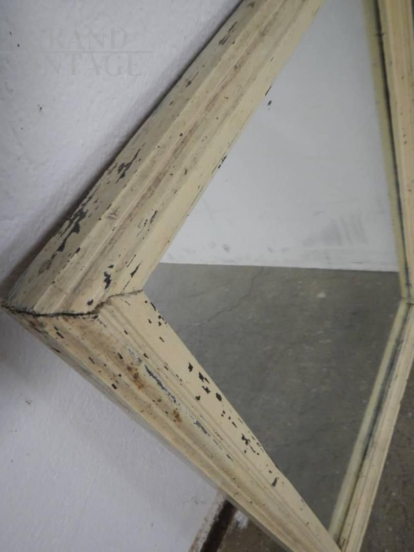 1950s vintage wall mirror with fir frame lacquered in cream color, with original hook for hanging. In good condition.