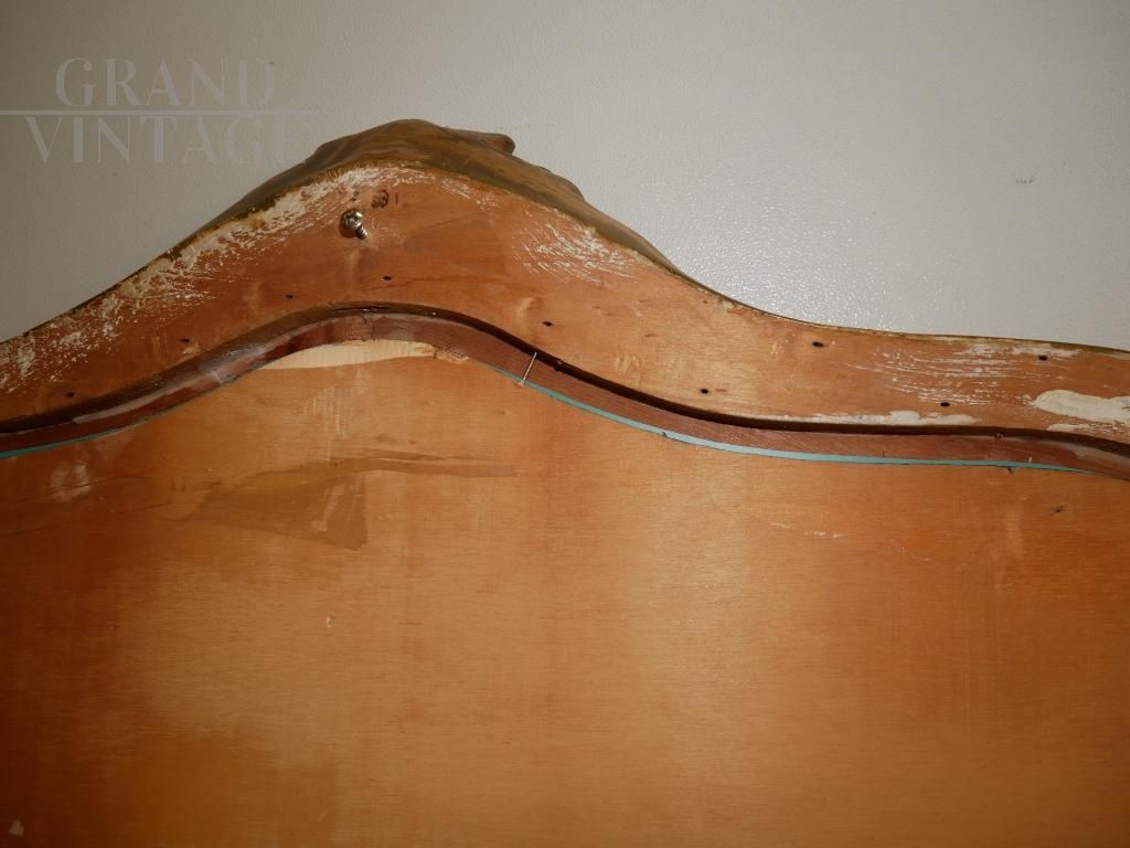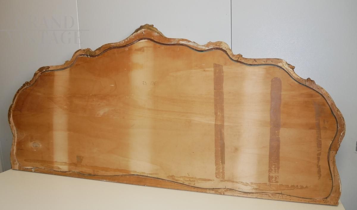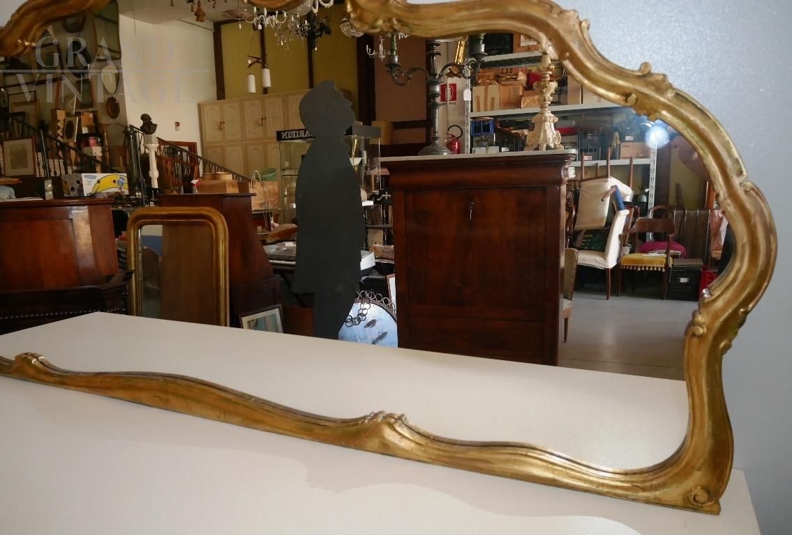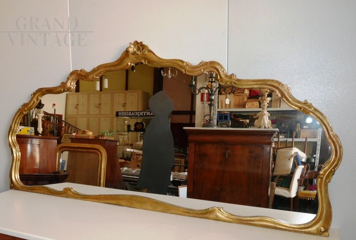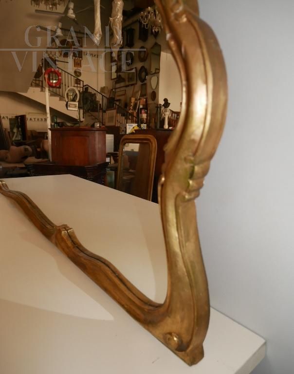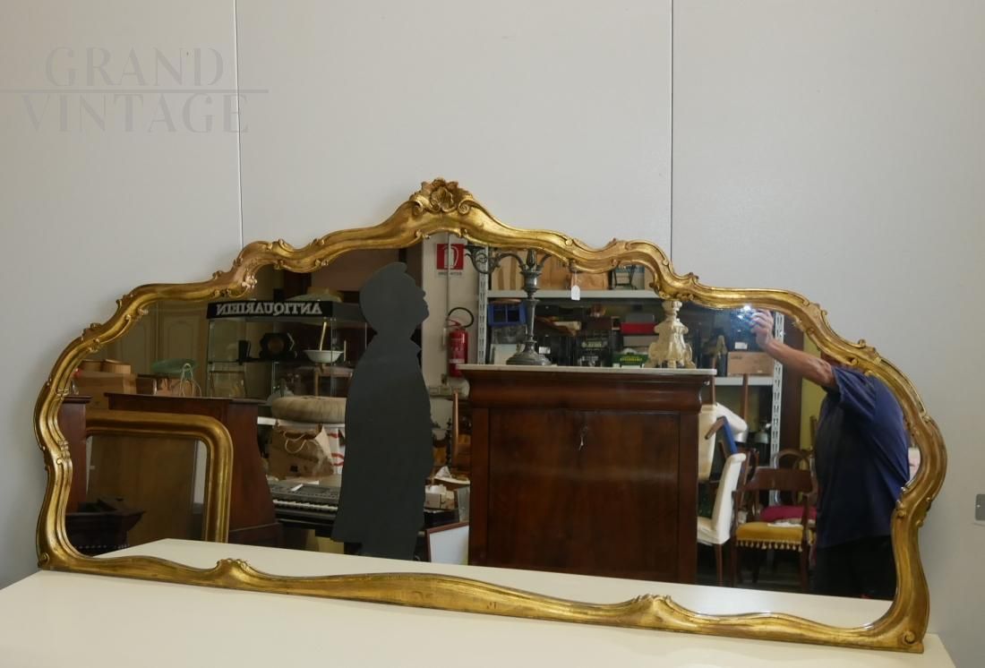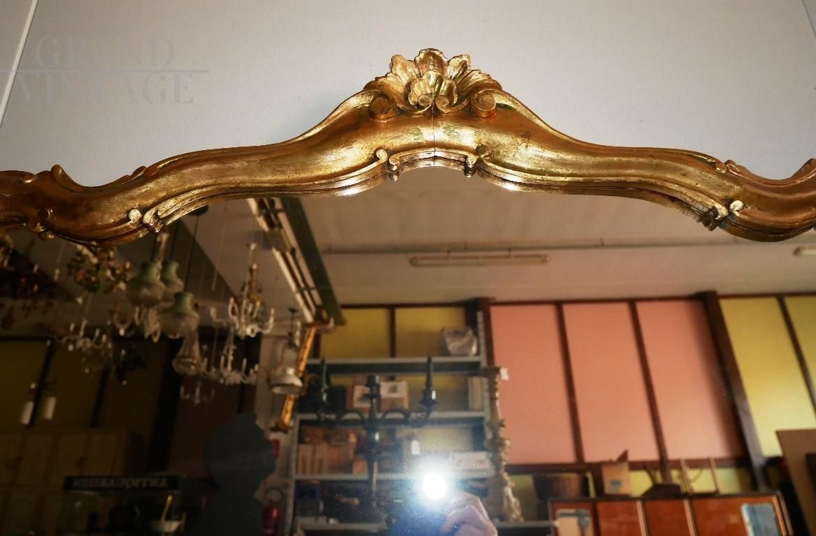 Large vintage dresser mirror, shaped, carved, and gilded using the pinchbeck faux gold technique, Italy 1950s. In excellent condition, the mirroring part is new.