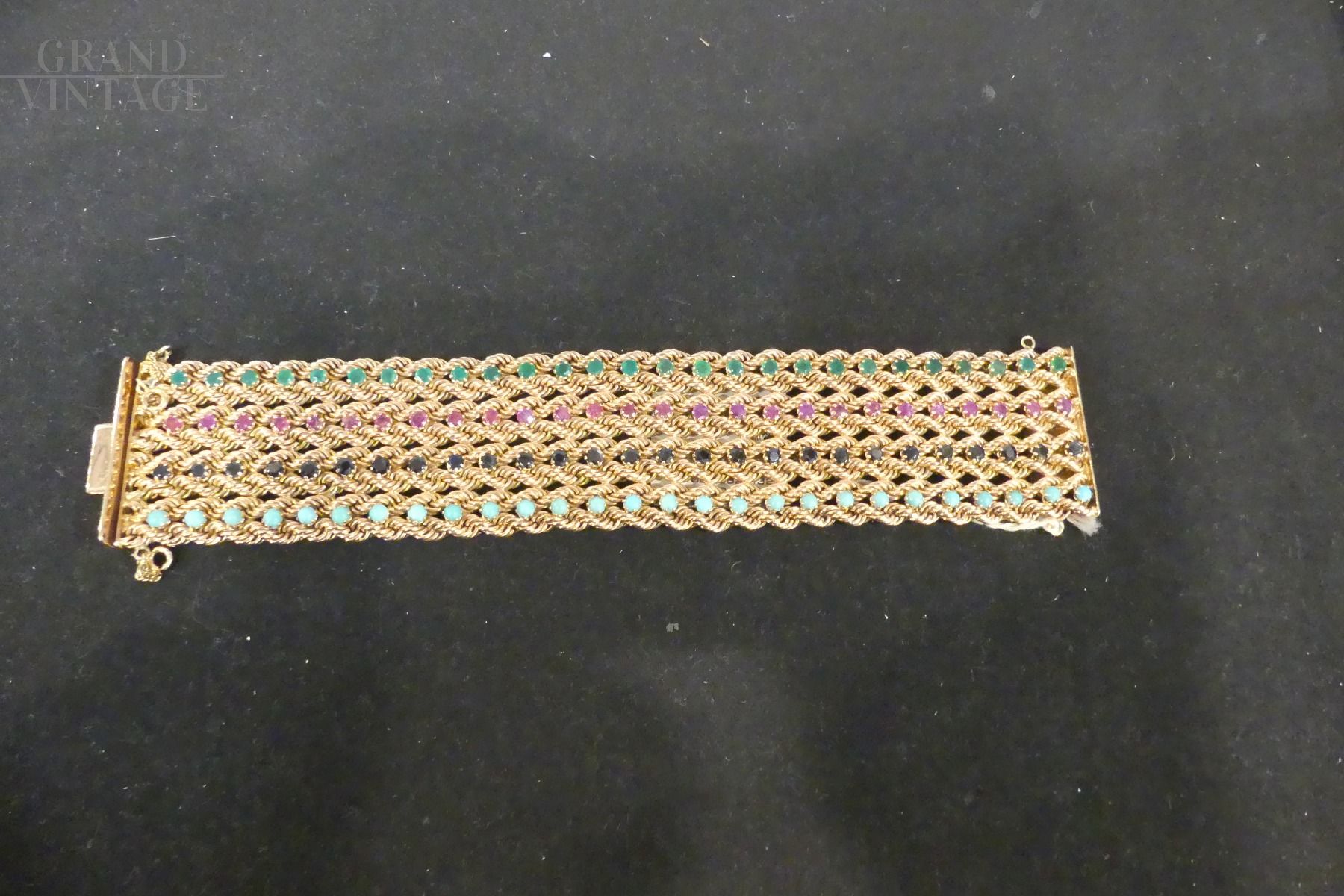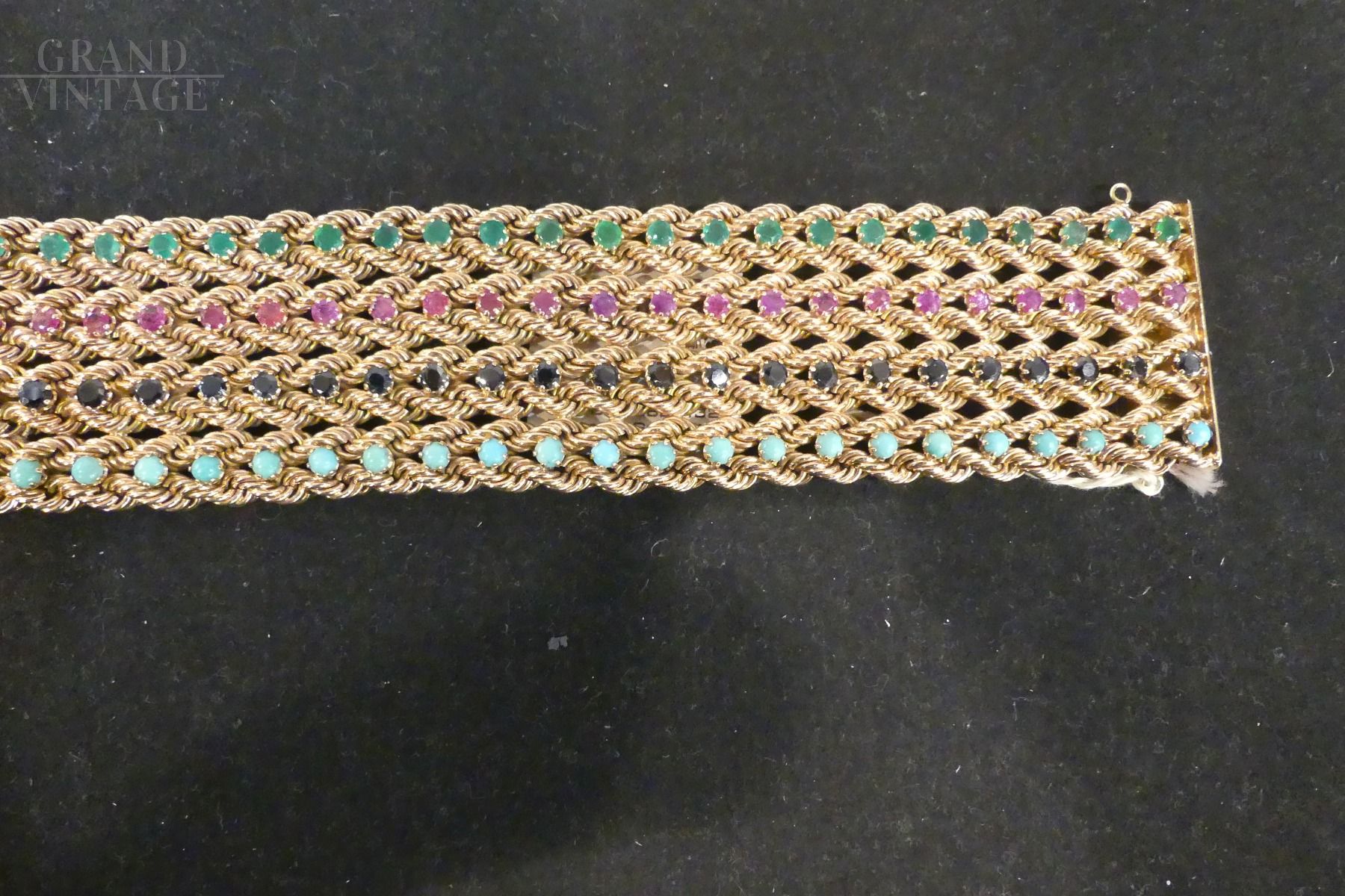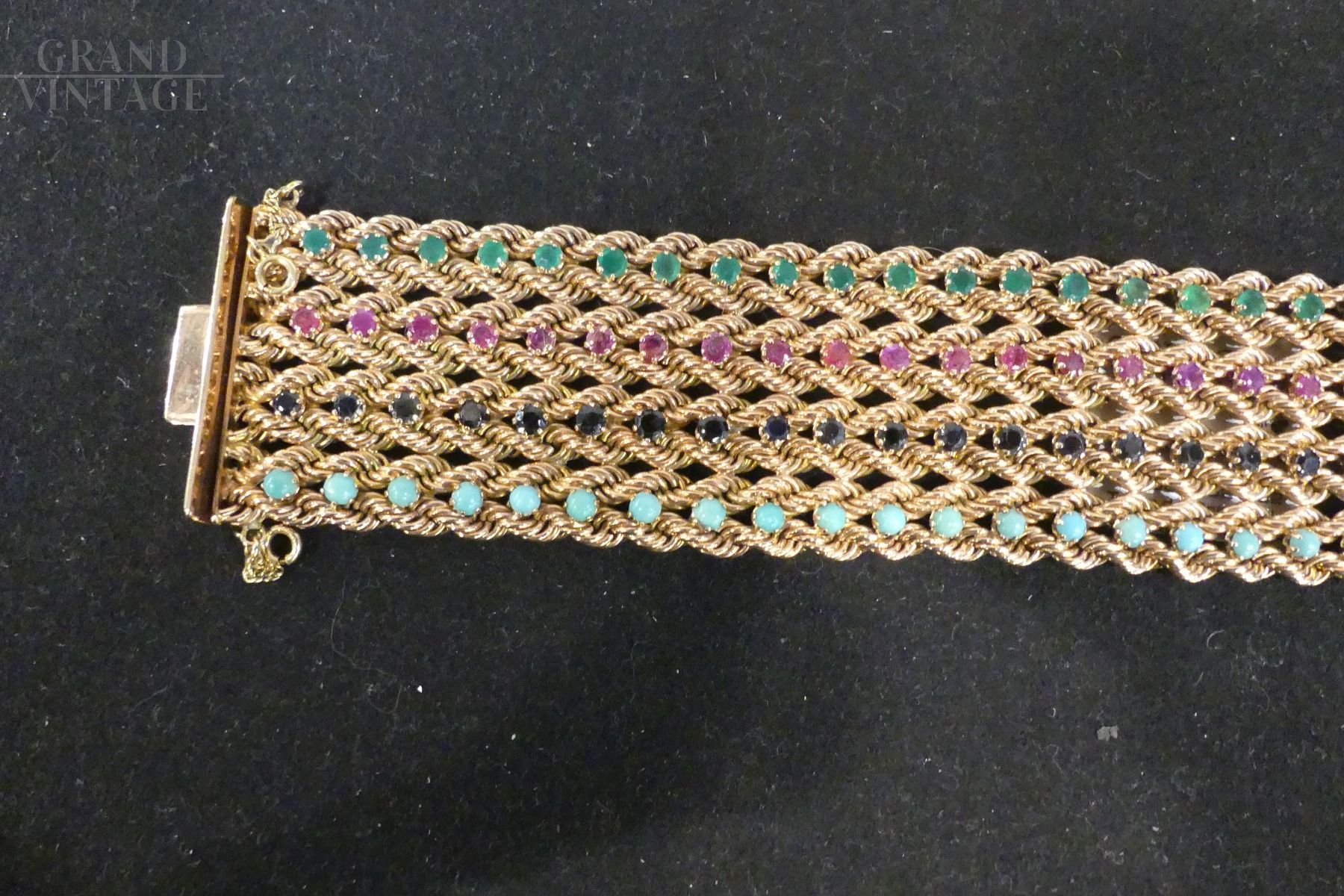 1960s bracelet in 14 kt gold with sapphires, rubies, emeralds and turquoises