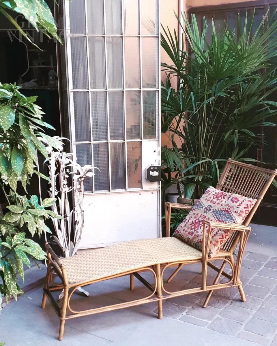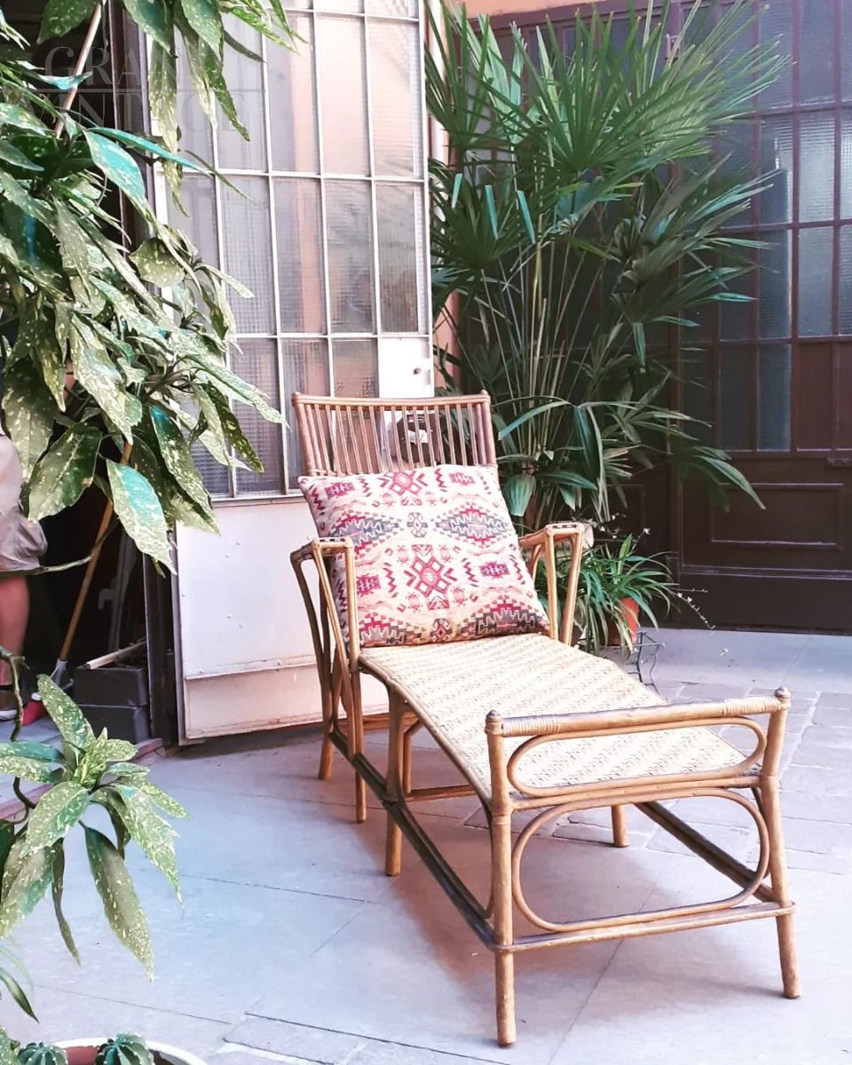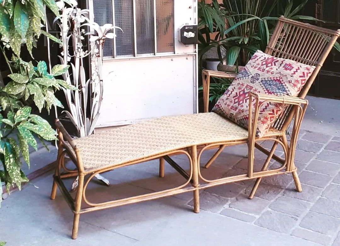 1960s chaise longue in ocher lacquered bamboo