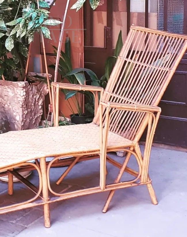 Beautiful 60s chaise longue in ocher lacquered bamboo, fixed non-reclining backrest, in excellent condition.