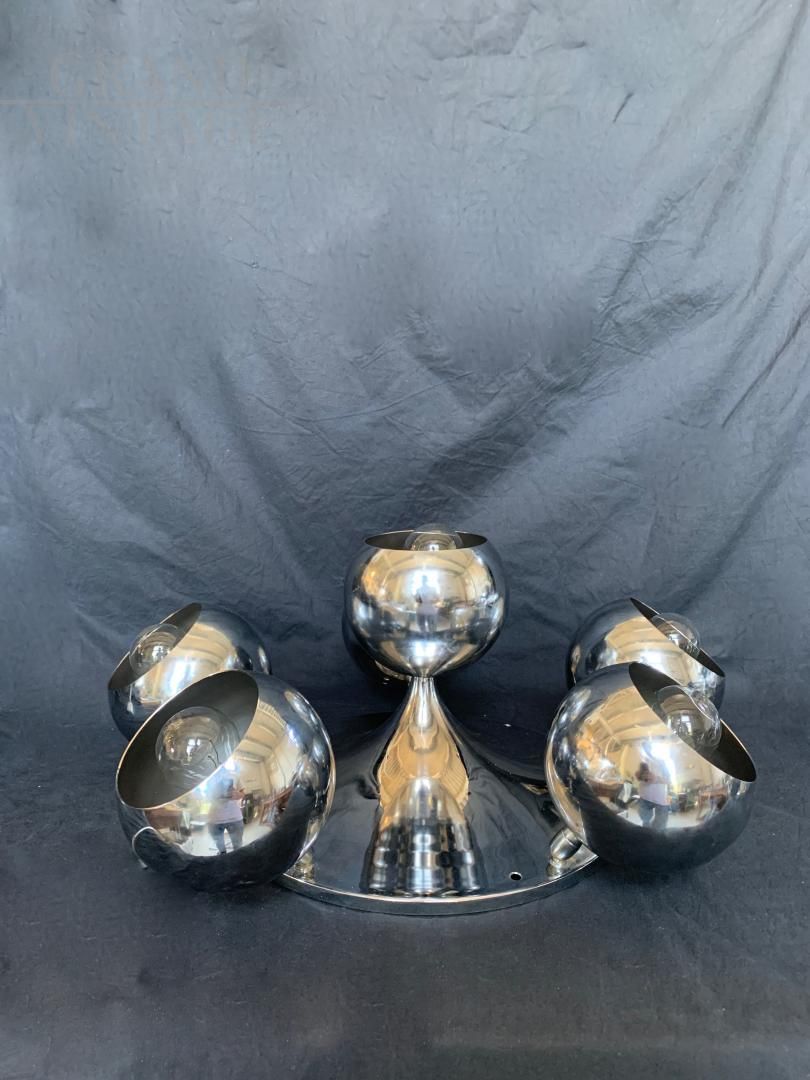1960s lamp in excellent condition, restored (electrical system redone and cleaned with pastes). Excellent and original chroming. Interesting and original lamp of the time. Adjustable, it can also be used as an applique. Easy to assemble, it has holes for the anchors on the structure. 6 pieces available.