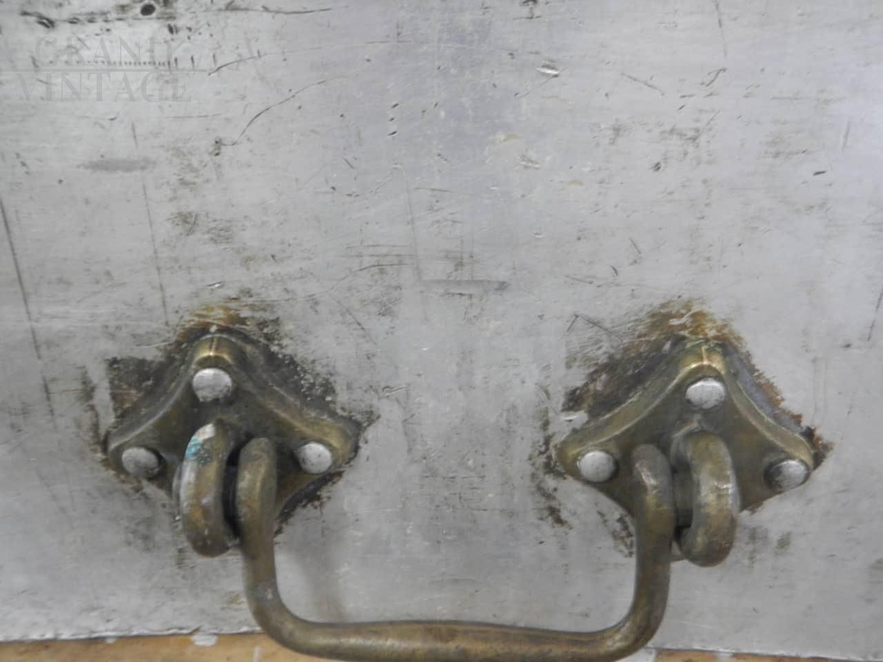 1970s military canteen aluminum food tray tub with hand riveted brass handles. Shows signs of use.