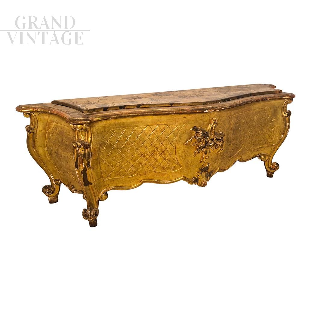 19th century French style low console in gilded wood