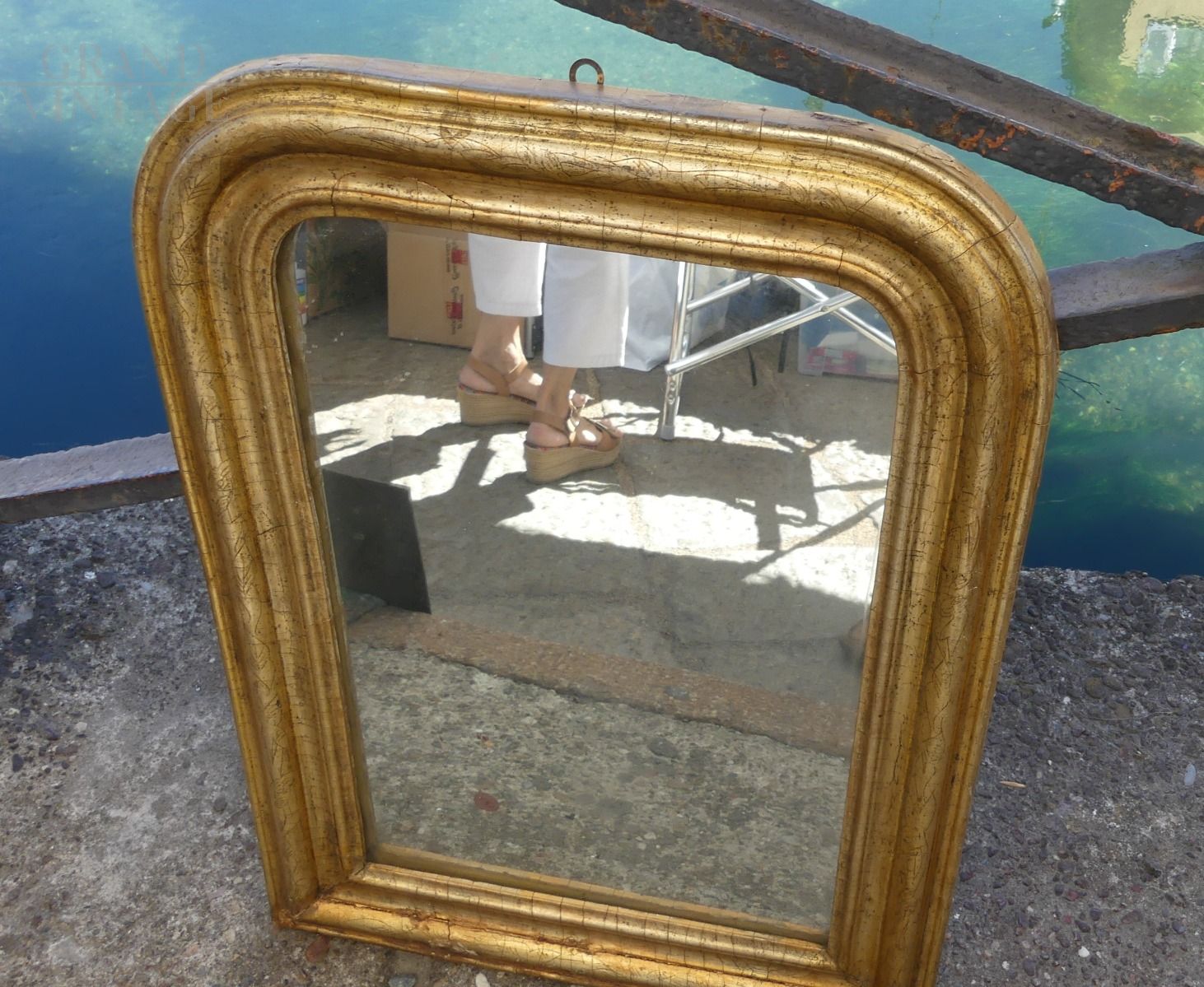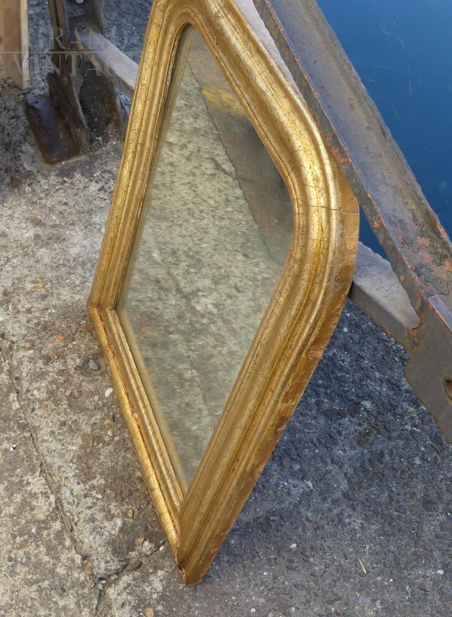 Antique 19th century mirror in wood decorated with gold leaf, still retains its original glass.