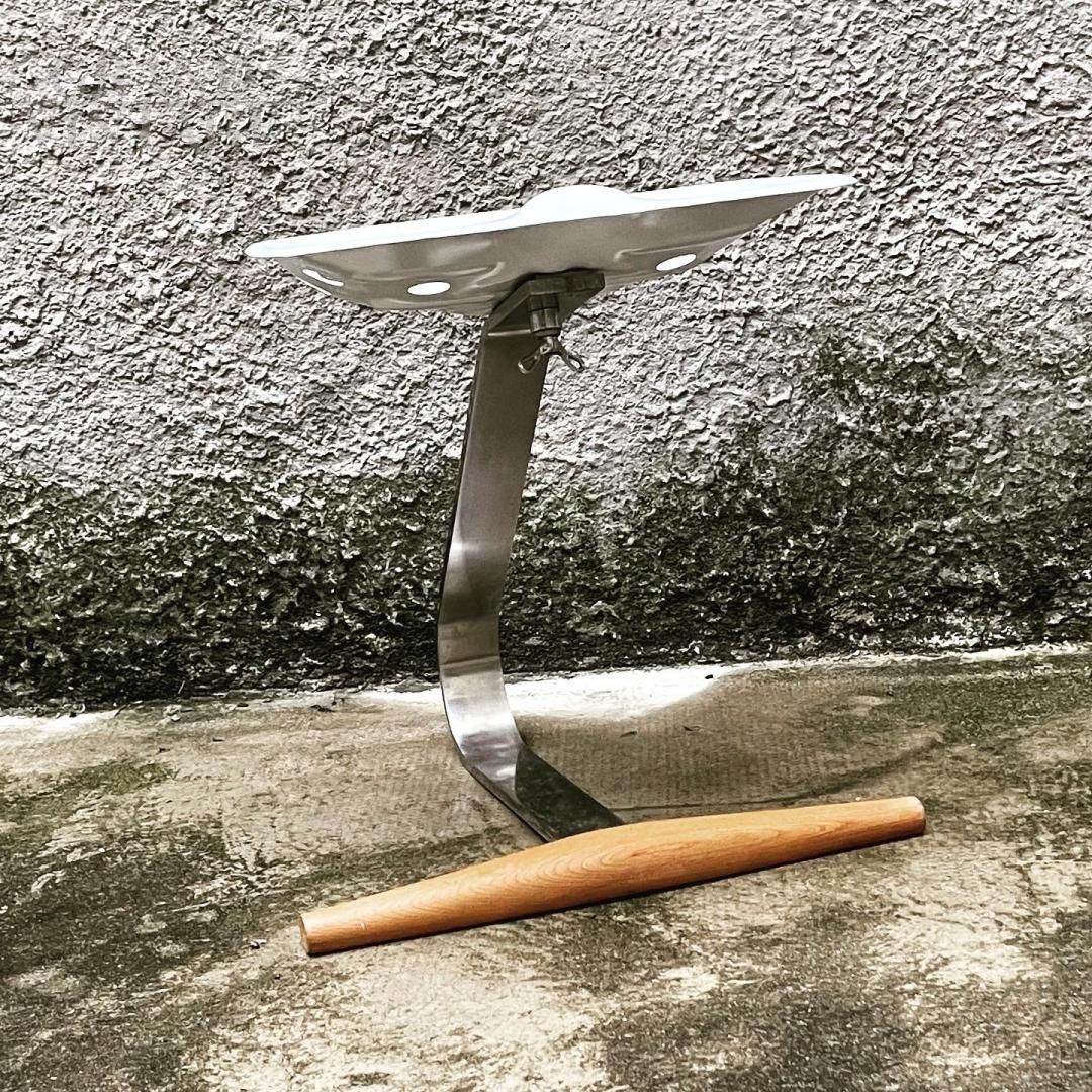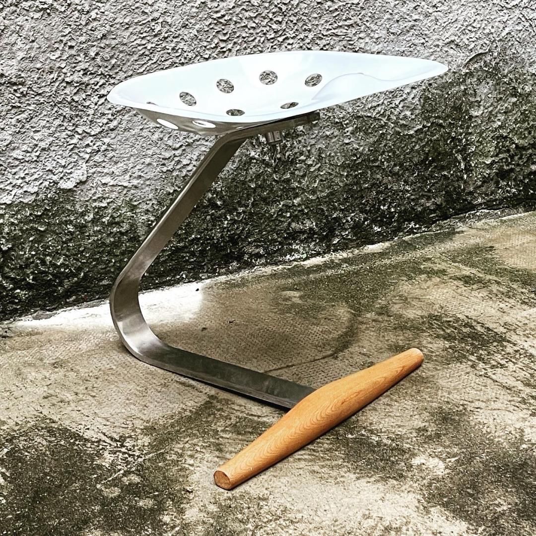 Mezzadro stool, designed by Achille and Pier Giacomo Castiglioni in 1957, considered an icon of Italian design excellence. Produced by the Zanotta company, it was exhibited at the 10th Milan Triennale. Company logo engraved under the base, guaranteeing originality.