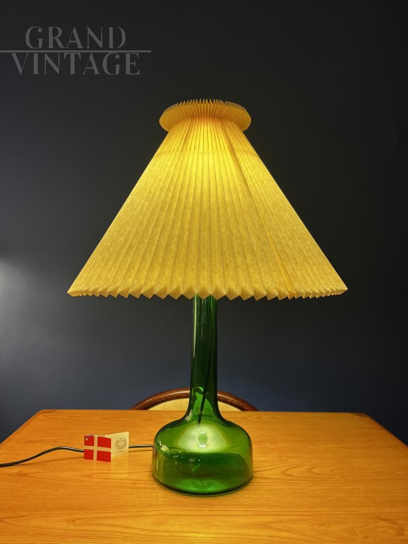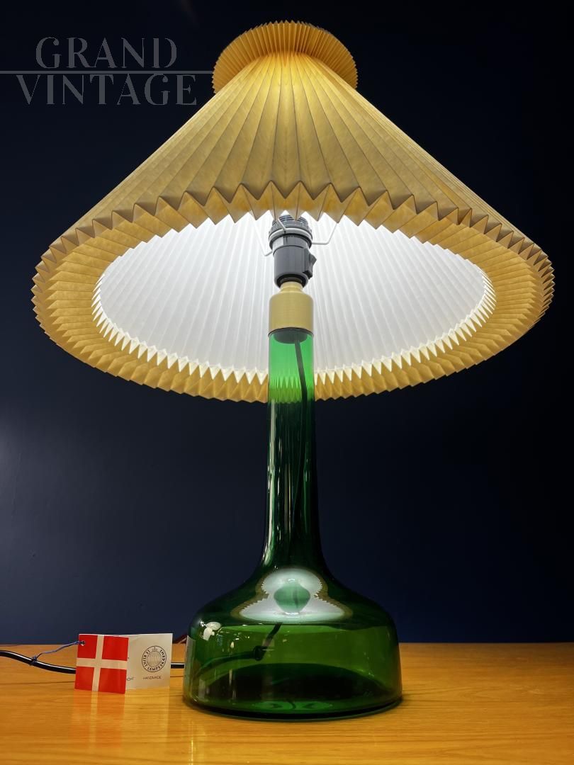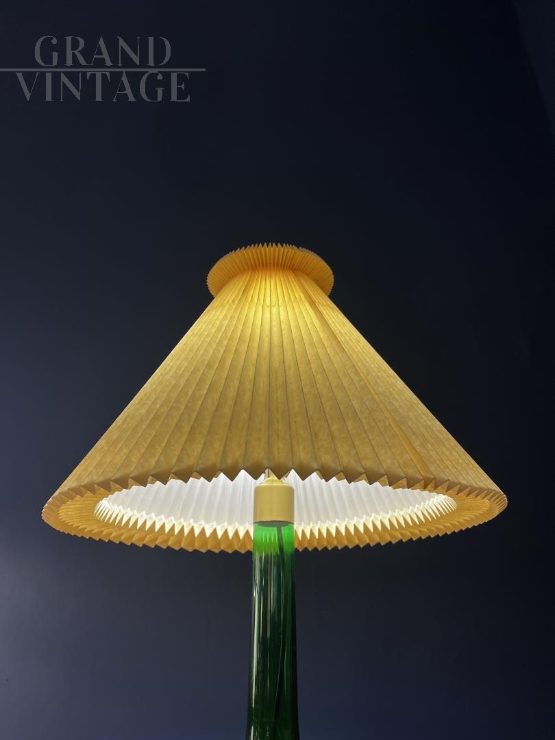 Table lamp abat-jour model 302 by Billmann Petersen for Le Klint in green glass with hand-folded parchment lampshade, Danish - Finnish design from the 1980s (in particular the designer is Danish, the company is Finnish). Complete with original packaging, never used!
