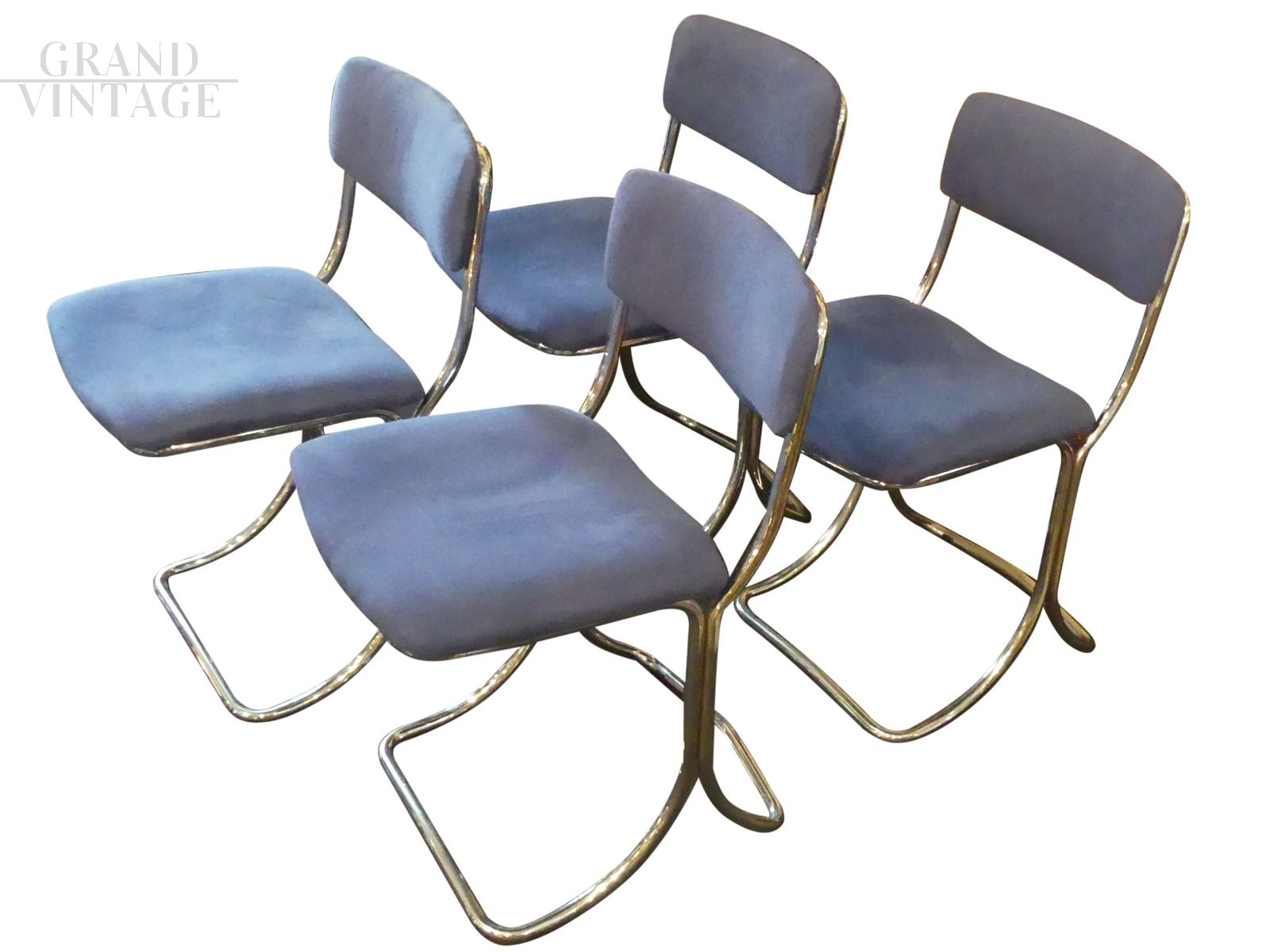 4 Giotto Stoppino chairs - 70s. Produced in Alcantara and chromed steel.
