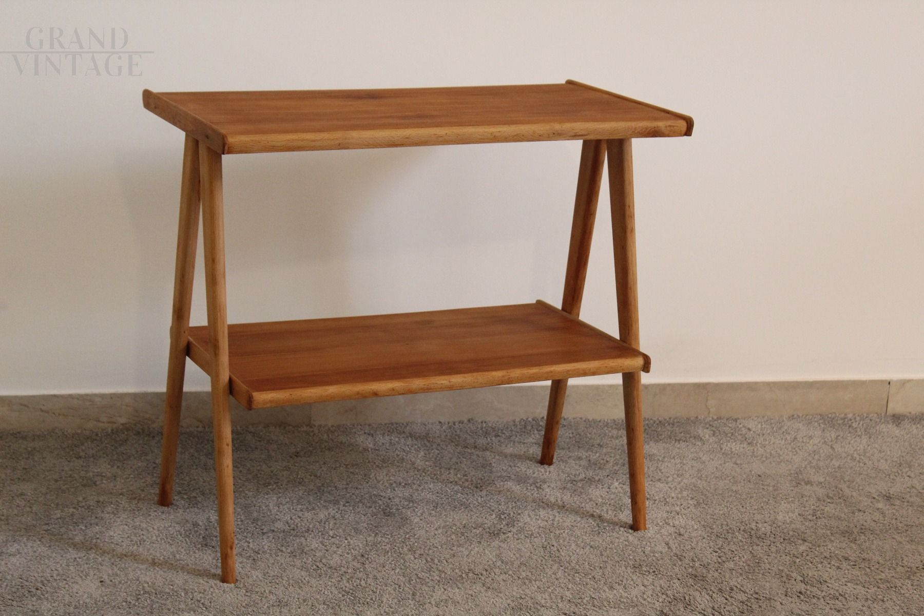 Vintage coffee table in beech wood with double top, Italy 1950s, restored, in excellent condition.