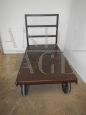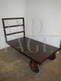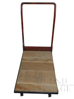 1950s industrial trolley with working wheels, restored and painted.