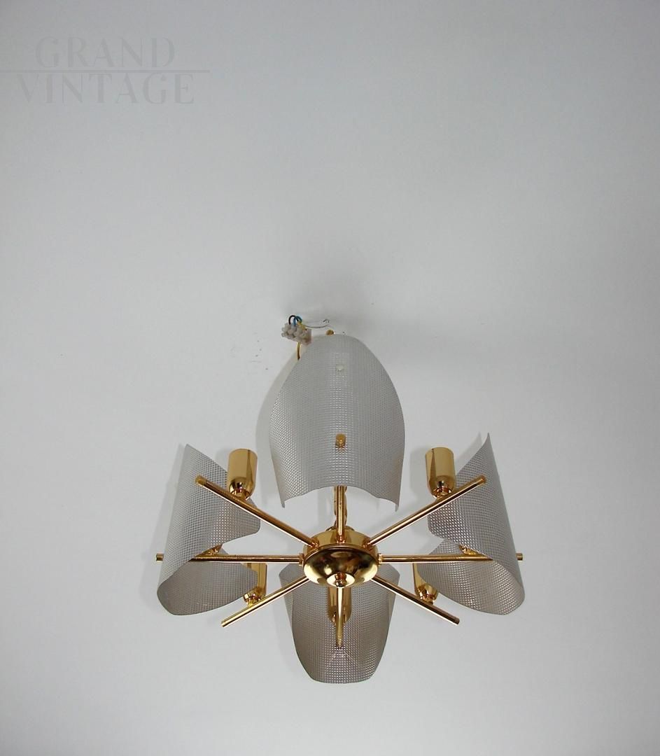 70s chandelier in aluminum and brass-plated steel