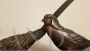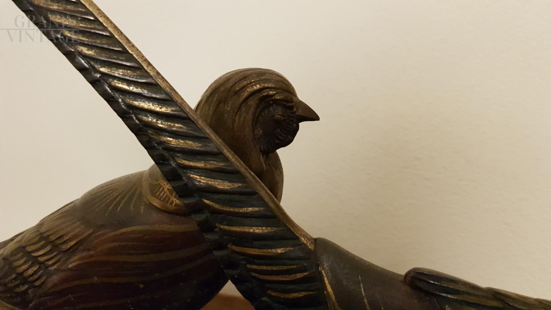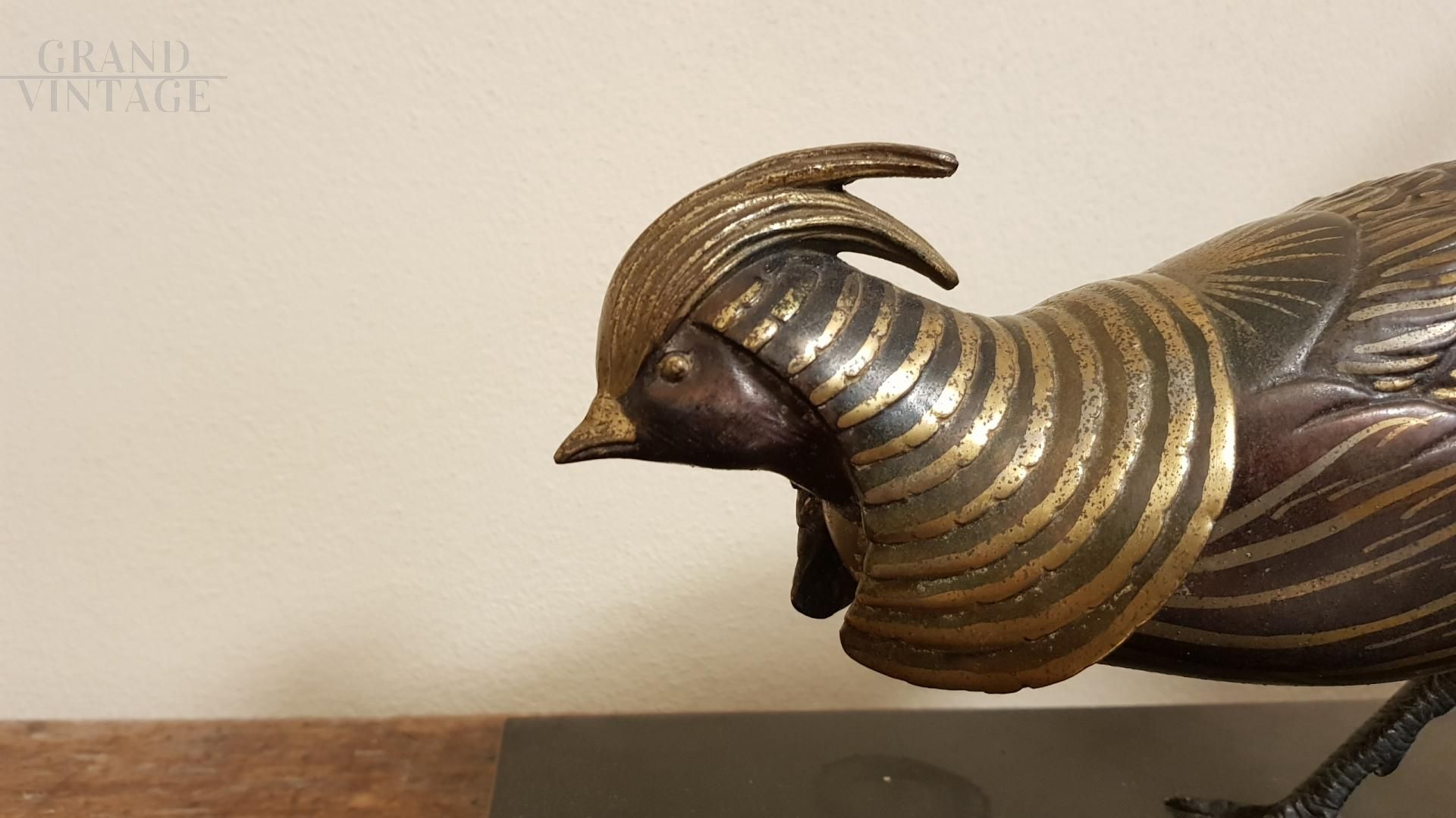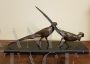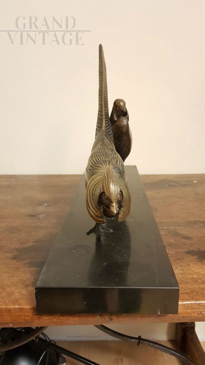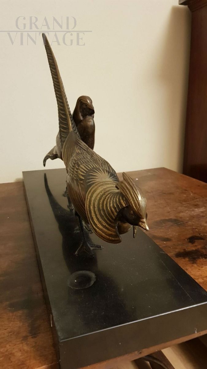 Bronze sculpture resting on a black marble base representing two birds.