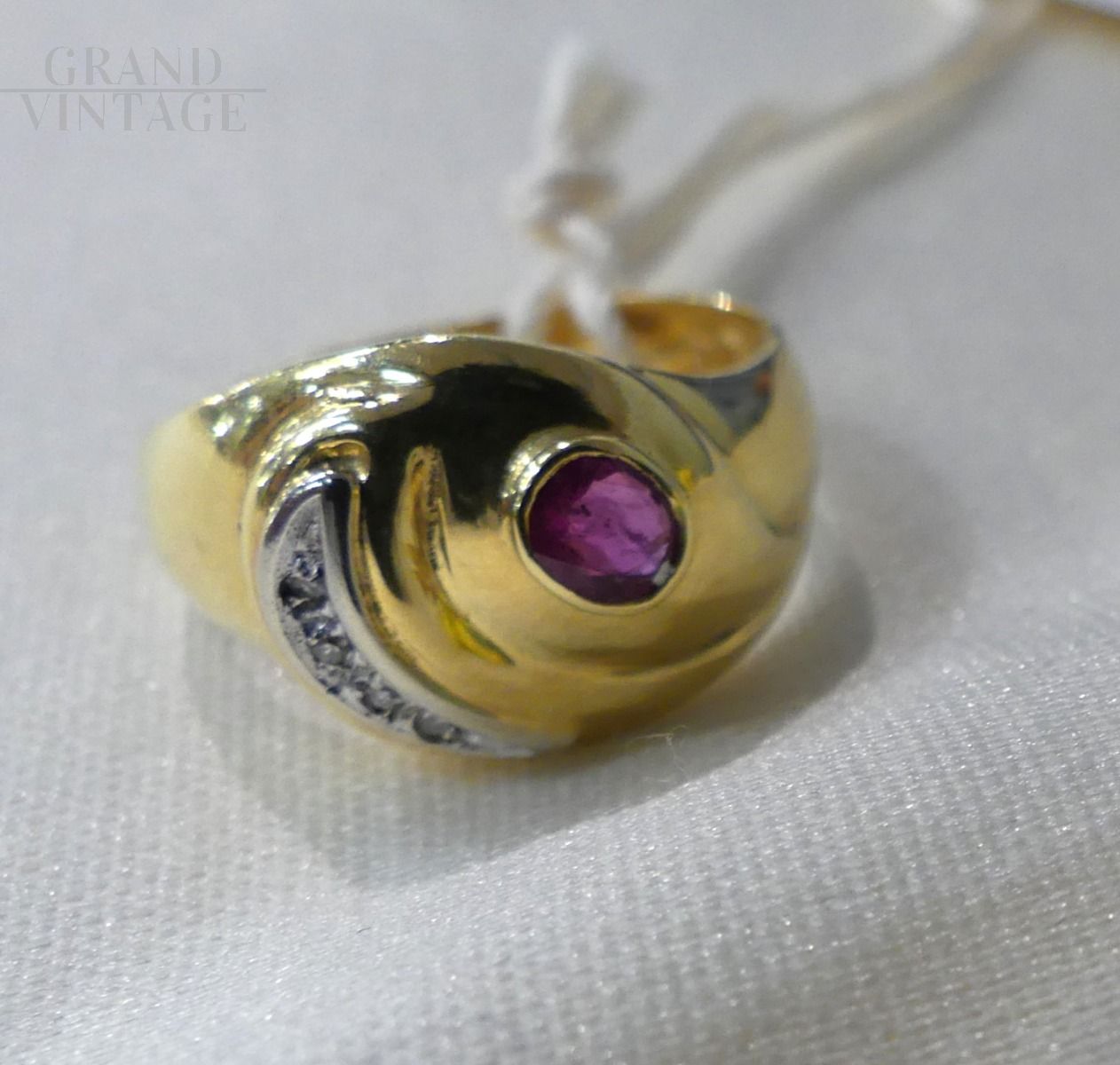 Anello anni '80 in oro con diamanti e rubino