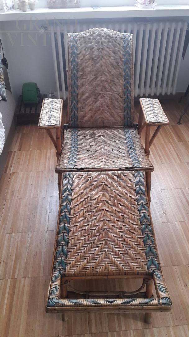Adjustable vintage wicker deckchair chaise longue