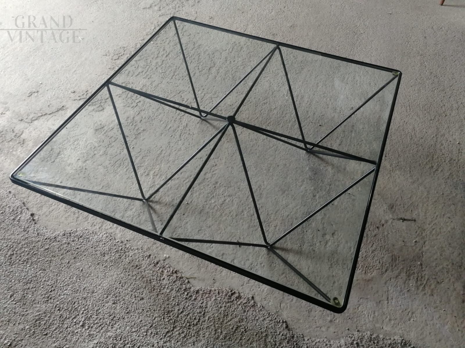 Alanda table by Paolo Piva for C&B Italia, with original glass top and black lacquered iron structure.