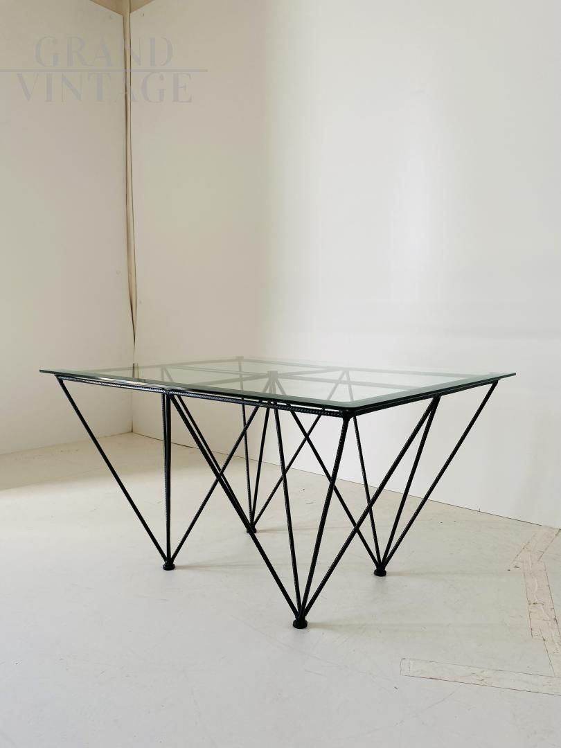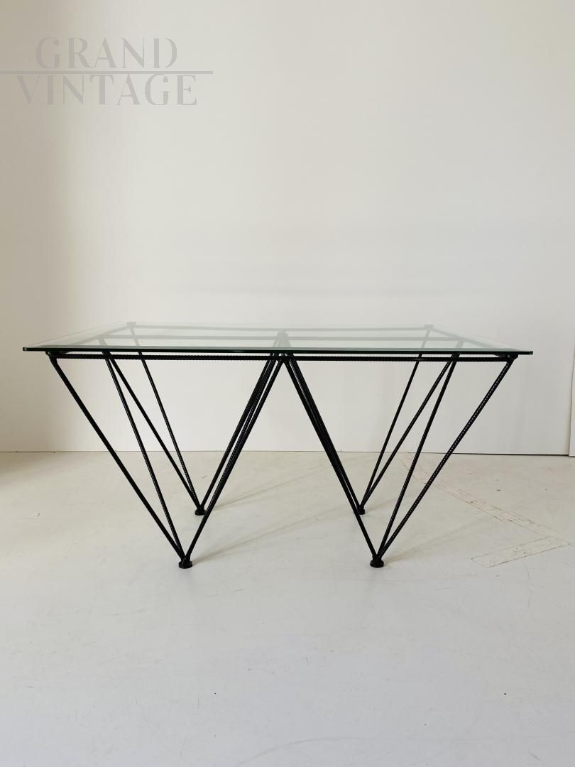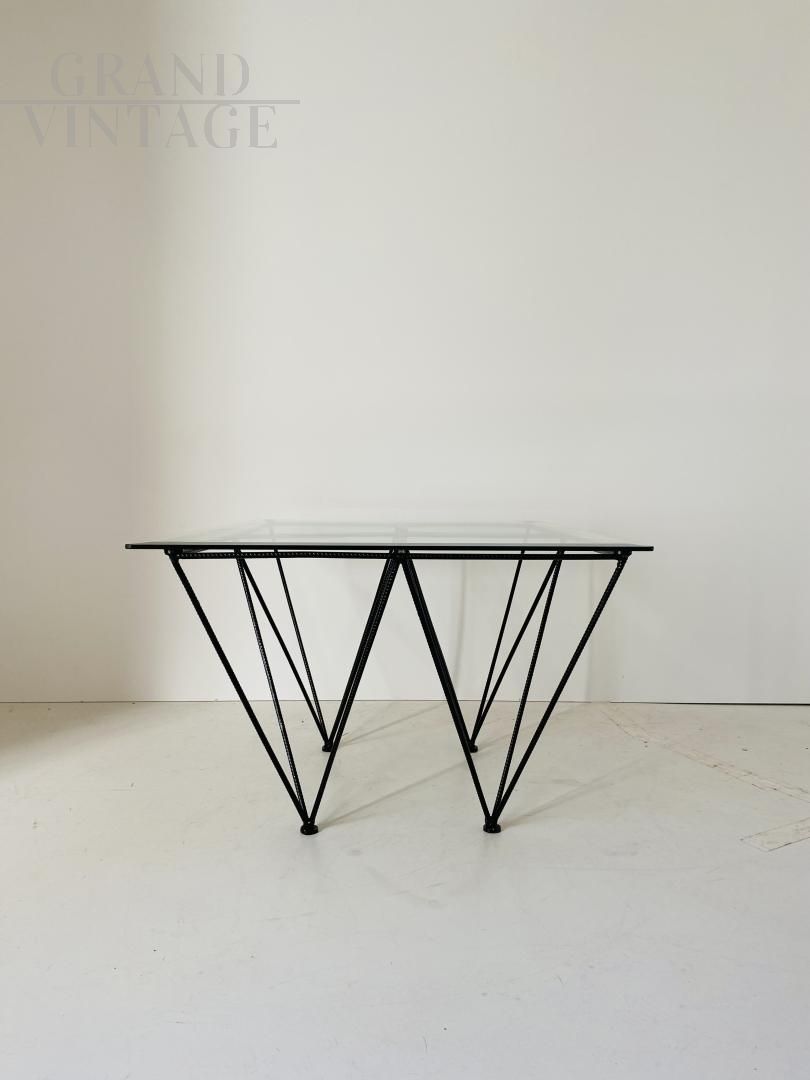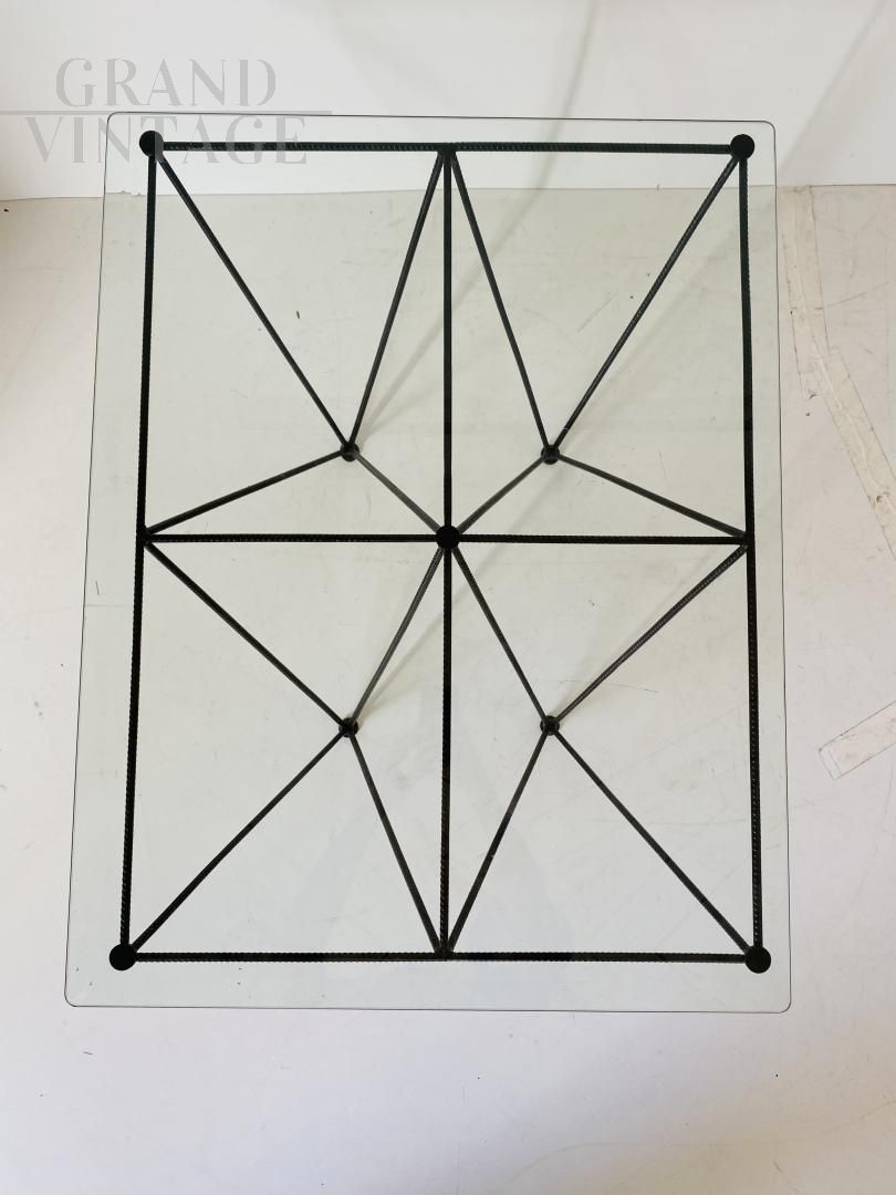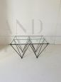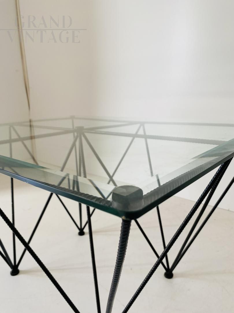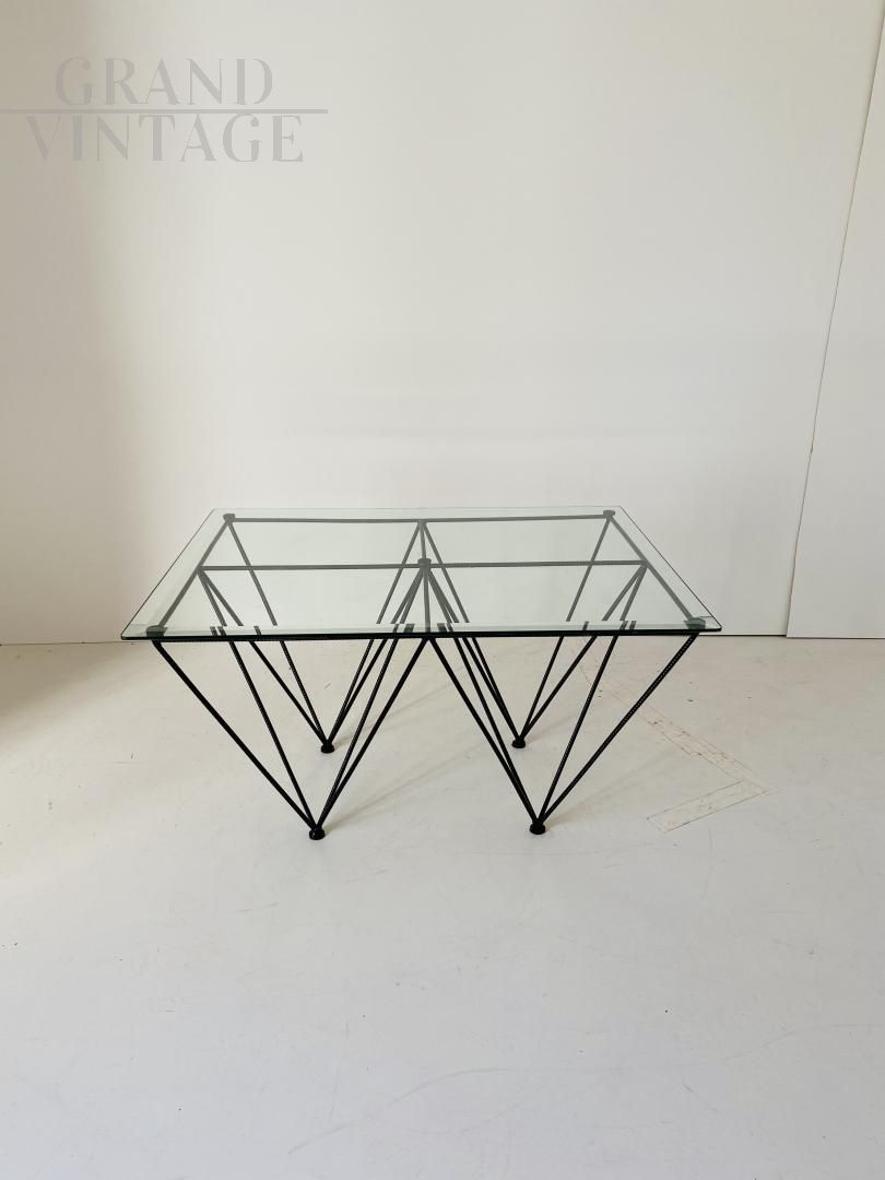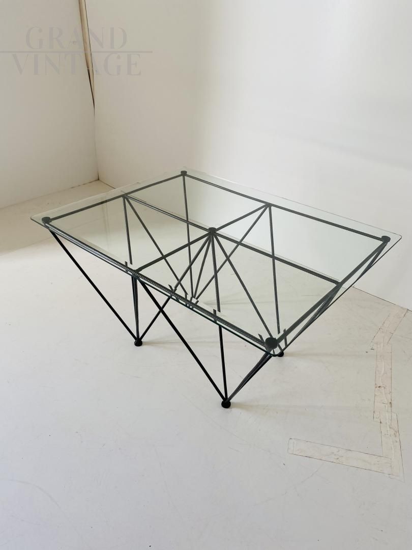 Industrial design coffee table in Alanda style, 1970s, with tubular steel structure and transparent glass top with elegant bevelled edges. In excellent condition.