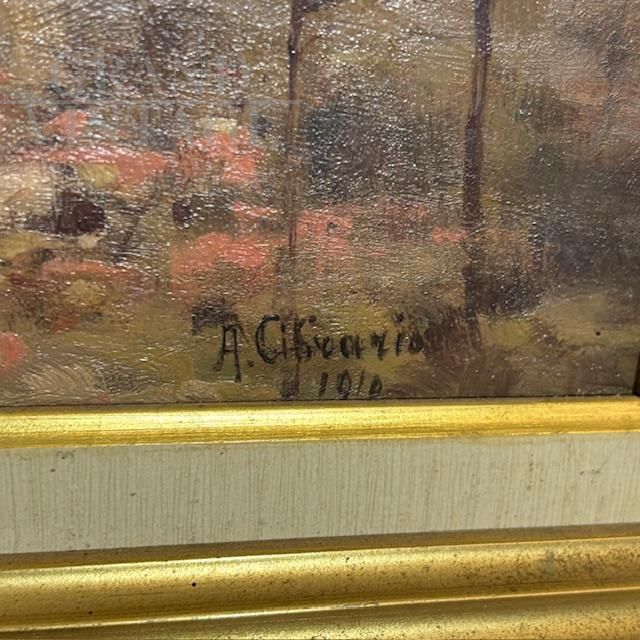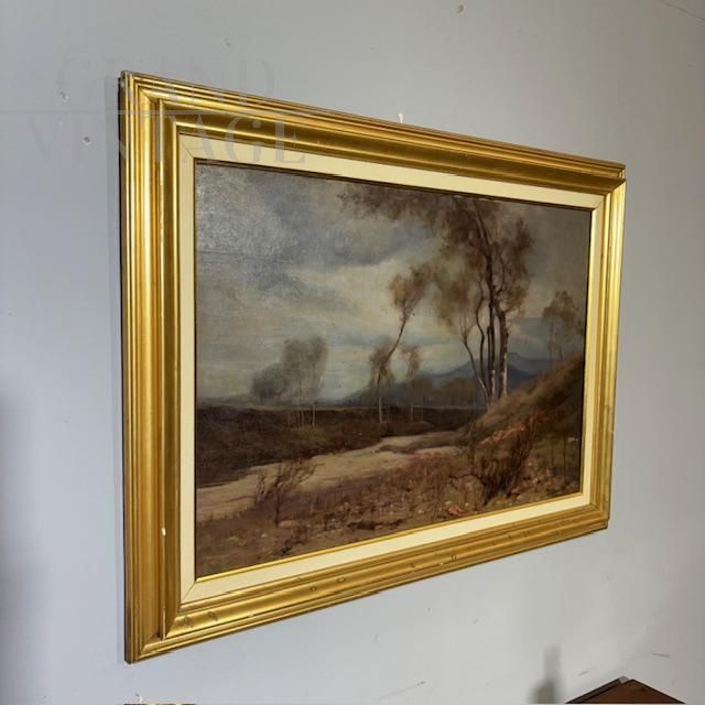 Oil landscape painting on wood of great quality by Alberto Cibrario (Turin 1877 – Turin 1962), a well-known Turin painter. The painting is signed and dated 1910 lower right. The work does not require any intervention.