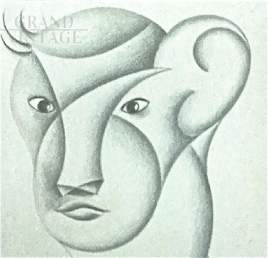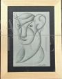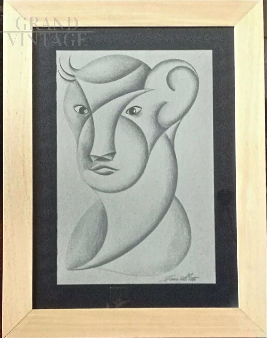 Alien, Futur-Cubist drawing pencil on cardboard by Erto Zampoli (Ro Ferrara 1925 -2003) with frame 64 x 50 cm, measures only drawing 44 x 30 cm.