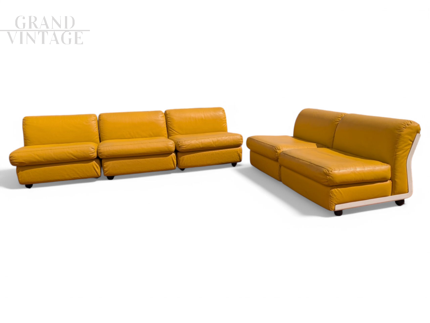 Amanta modular sofa by B&B Italia in yellow leather, 1960s