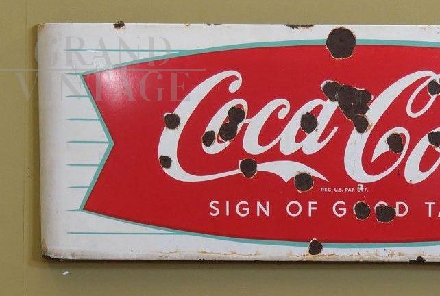 Authenticity and experience emerge from this historic American sign with the classic white Coca Cola logo on a red background, perfect for industrial environments or for those seeking a refined vintage touch.