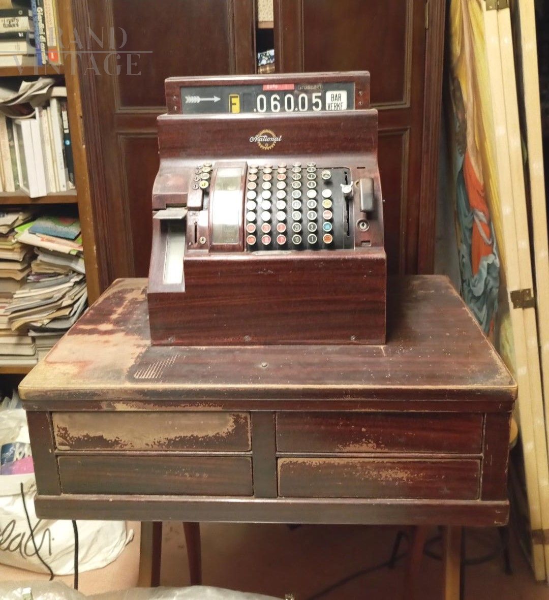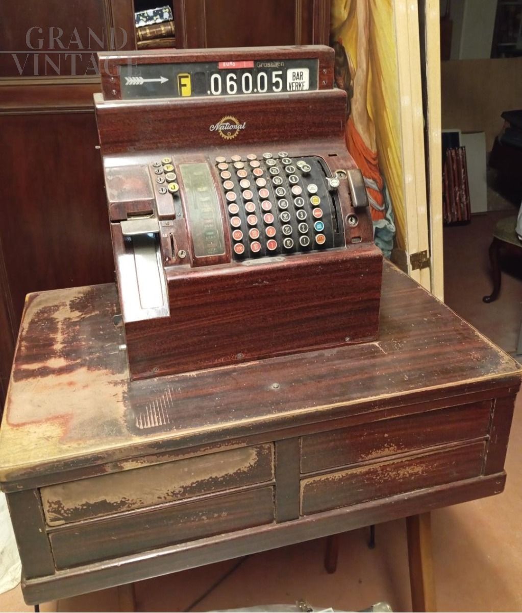 Beautiful vintage National cash register in wood, made in America between the 40s and 50s and subsequently transformed with euros.