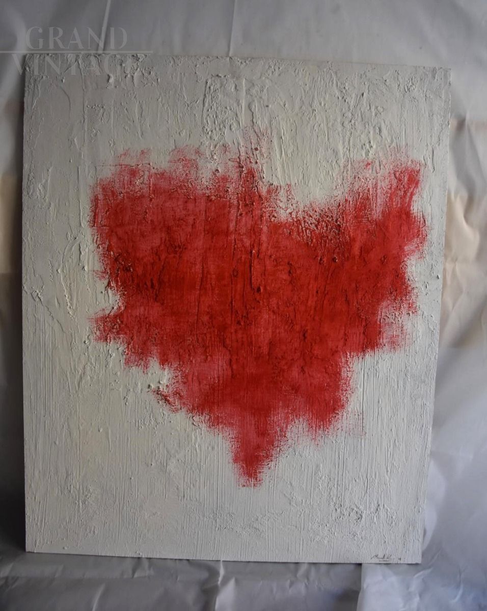 Love for Art - Painting created by the Lombard artist Andrea Busnelli (1989) with tempera and oil on wood, a declaration of love by the artist towards art; and what better way than by depicting a vibrant blood red heart on a white background? Painting with certificate of originality signed by the artist.