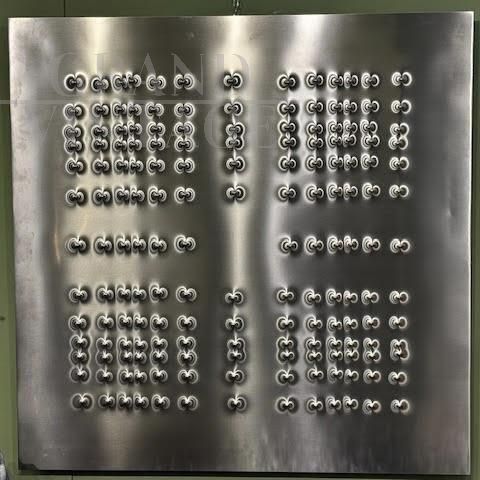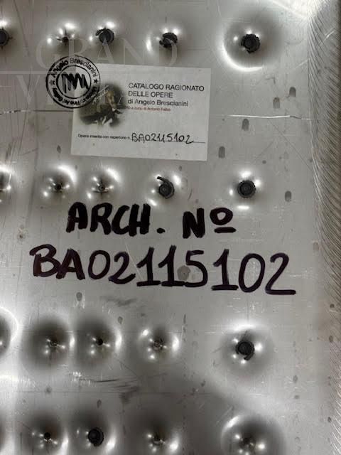 Unique artwork by Angelo Brescianini on stainless steel plate 100 x 100 cm formed by 140 22 caliber pistol shots. The work bears a description, artist's signature and archive details on the back. The work is accompanied by a certificate of authenticity and catalogue where included. The artistic experience of Angelo Brescianini (Palazzolo sull'Oglio, 1948) began in the late 1960s, when in 1968 he participated in the Padua Biennale with a typically informal work. In the 1970s, the spirit of tireless research led the artist to abandon the canvas and colors, to devote himself to sculpture. They are abstract wooden sculptures, which from the mid-1980s are equipped with mechanisms that expand the expressive possibilities linked to the form: these are kinetic works of art, where movement becomes a fundamental element. The transition from static to dynamic sculptures is dictated by the need to create works capable of communicating differently with each new gaze of the observer.