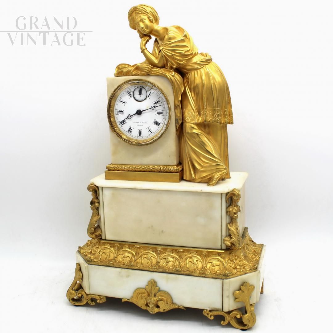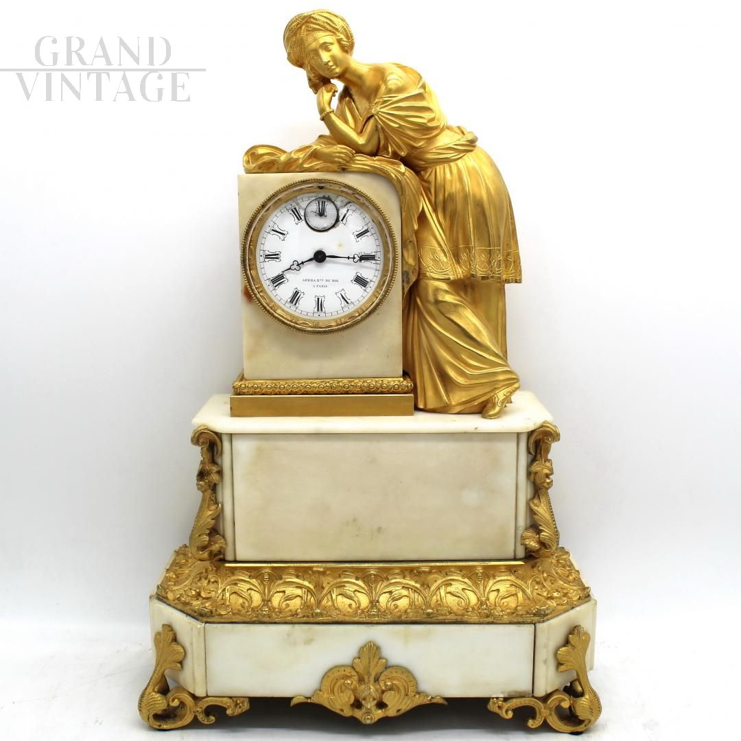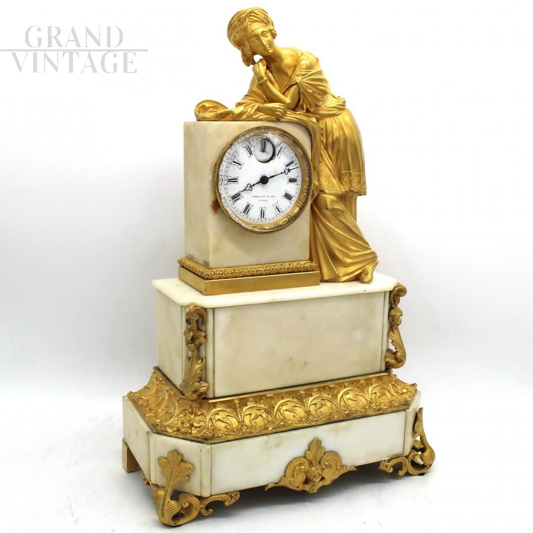 ANTIQUE PENDULUM CLOCK LOUIS PHILIPPE IN GILDED BRONZE AND MARBLE - 1800s