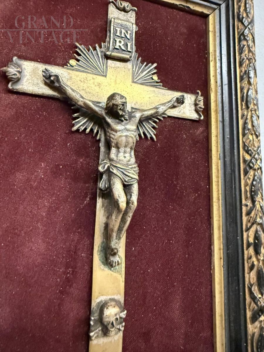Antique 19th century bronze crucifix with frame