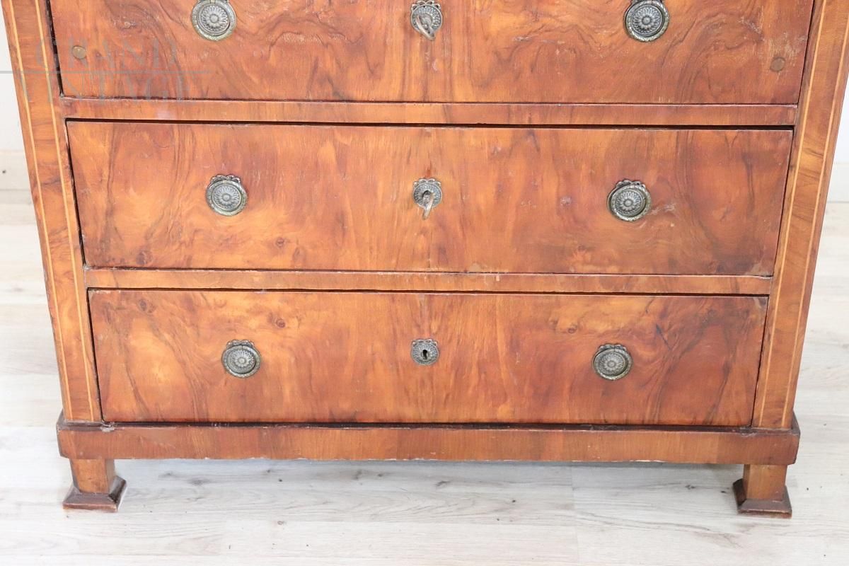 Antique 19th century chest of drawers in walnut feather with small inlays