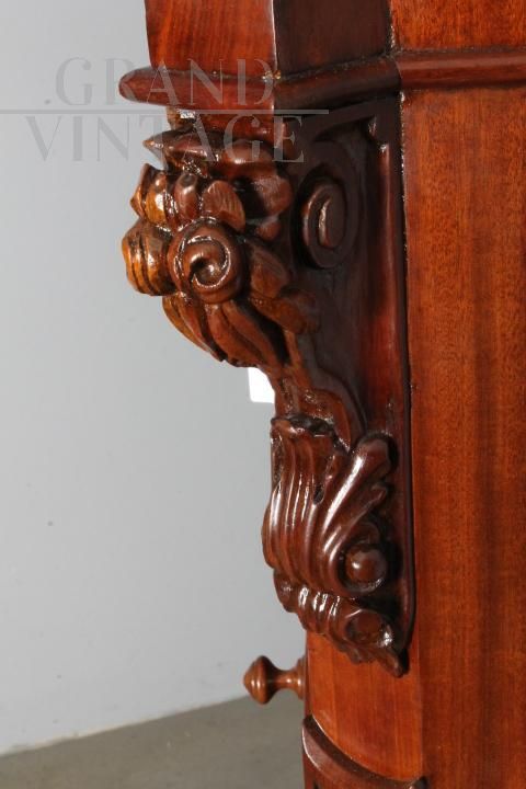 Stunning antique Italian Tuscan tallboy dresser from 1860, from the Louis Philippe era, in walnut feather and solid walnut with beautiful carvings on the uprights and wooden knobs, restored and of the highest quality.