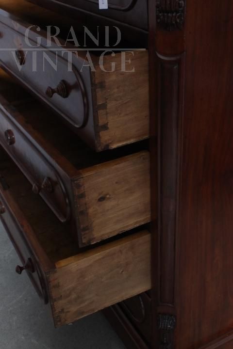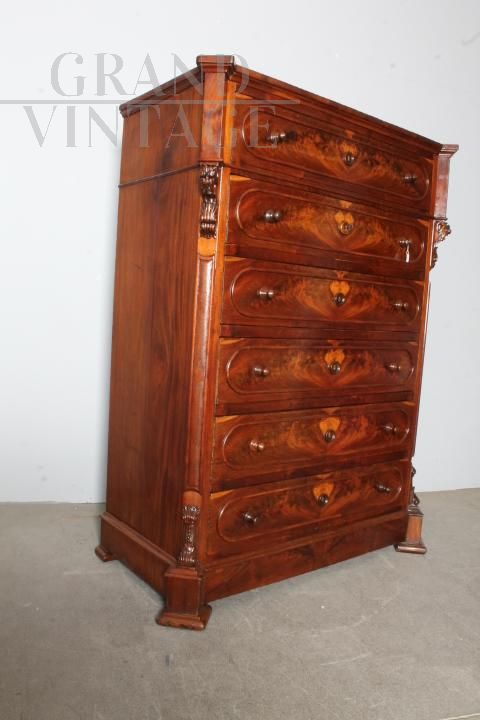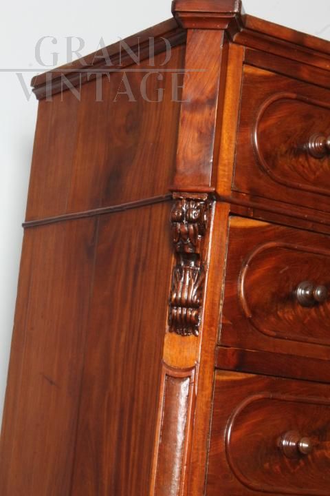 Antique 19th century Tuscan tallboy dresser in walnut feather