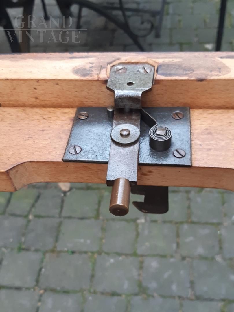 Dimensions: closed width 175 cm, depth 120 cm, height 80 cm. Complete with 4 extensions of 52 cm each, for a total of 383 cm in maximum width.