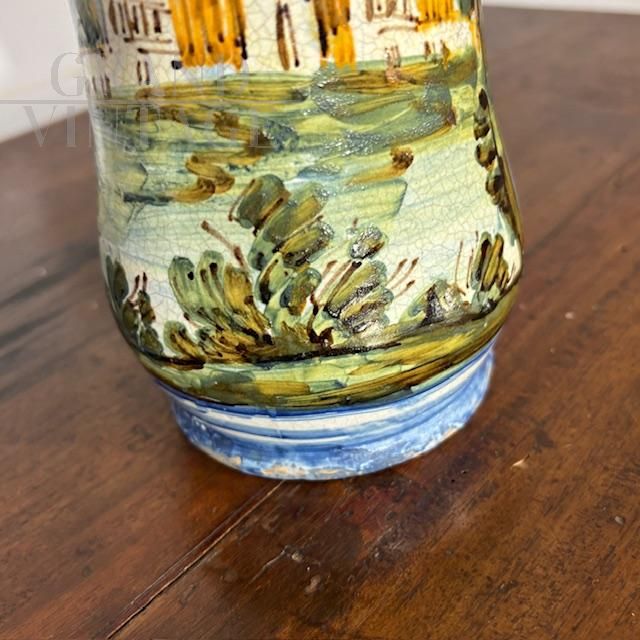 Dimensions: height 20 cm, diameter 10.50 cm. The classic hand-painted decoration with landscape and houses is very beautiful. It has small natural imperfections and ancient streaks, as shown in the photo.