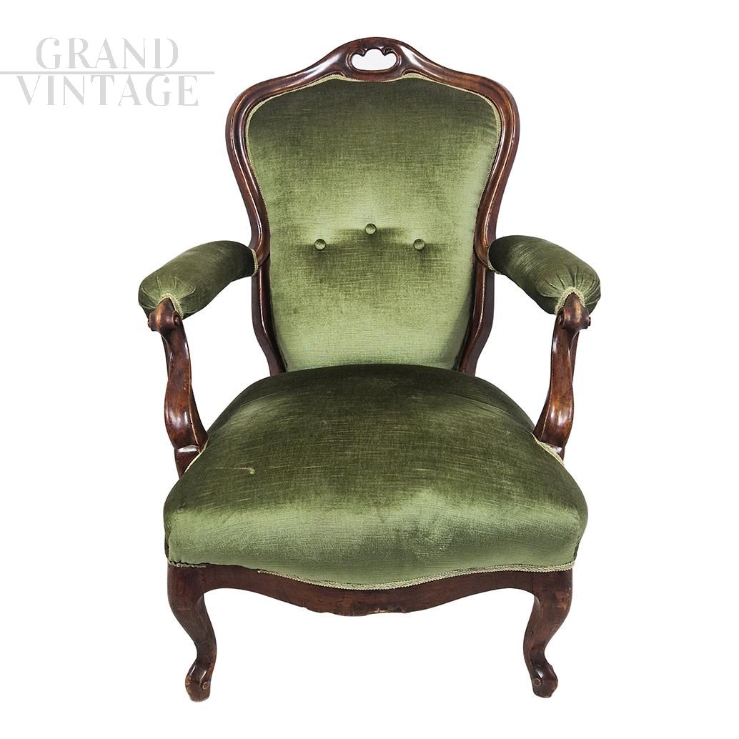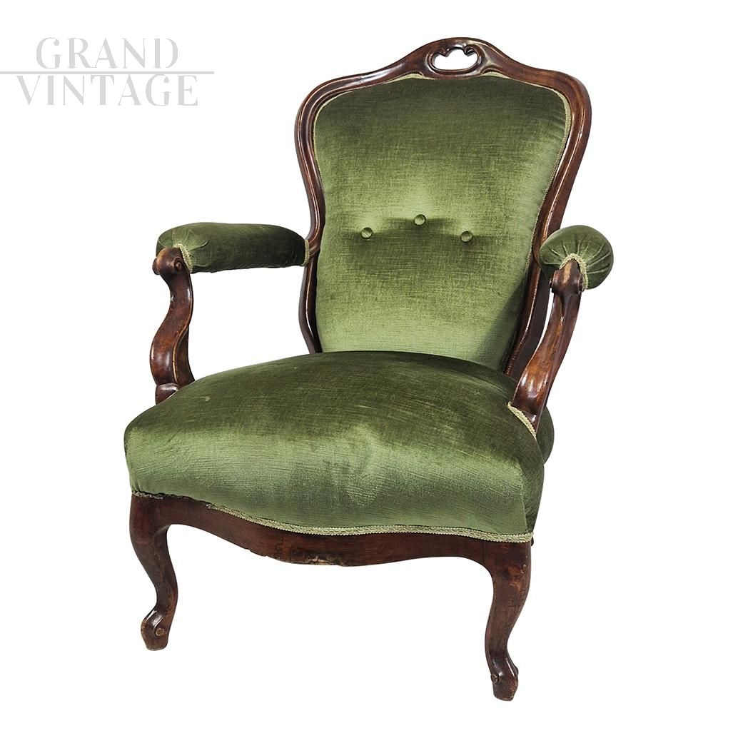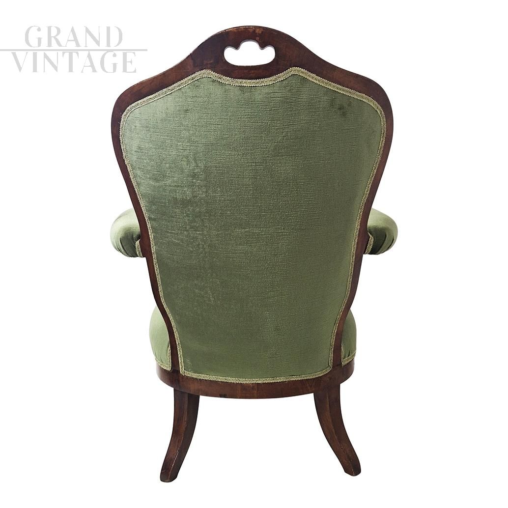 Antique armchair from the Louis Philippe era in green Genoa velvet