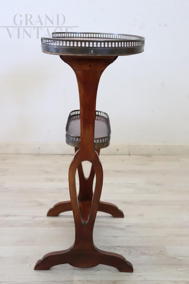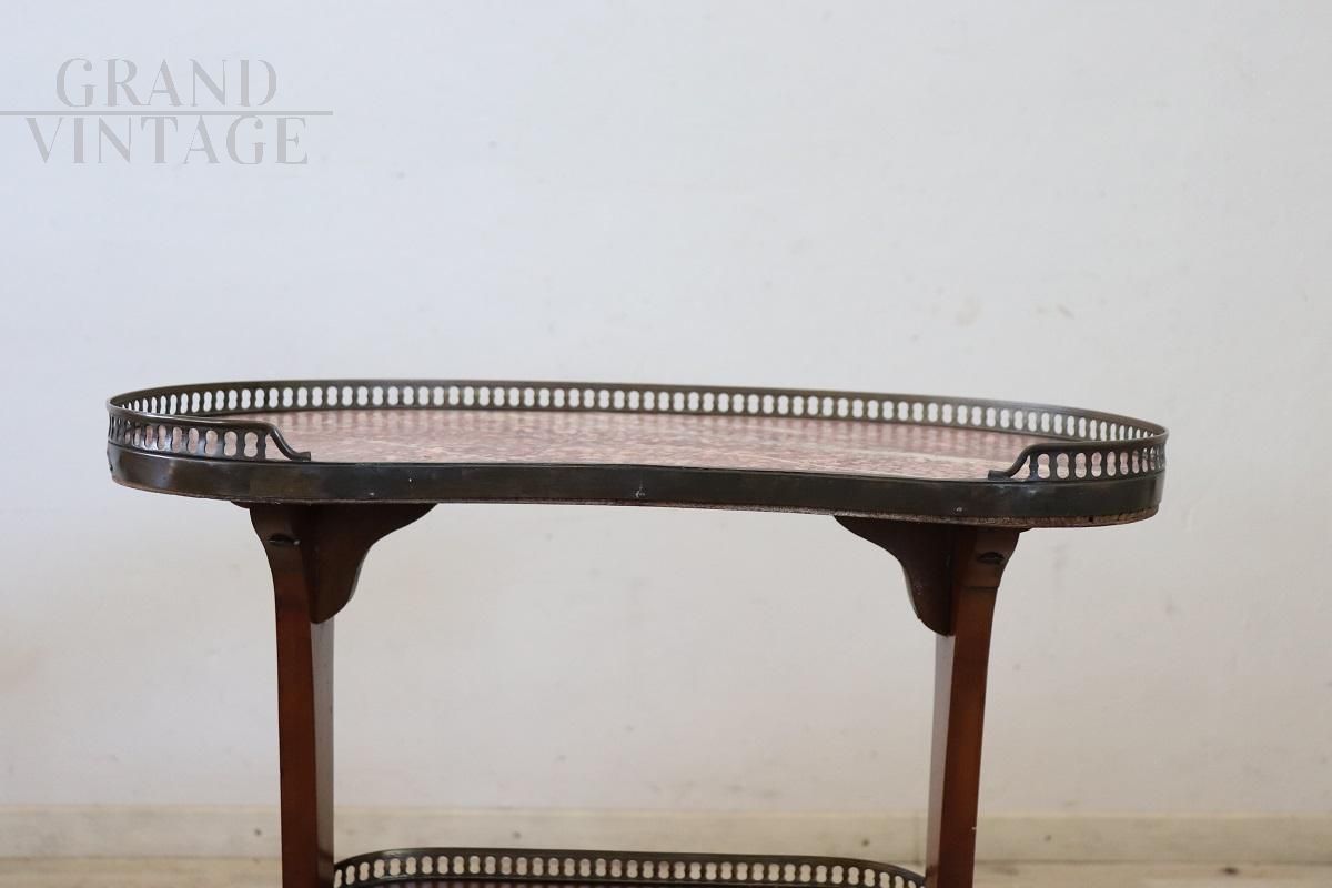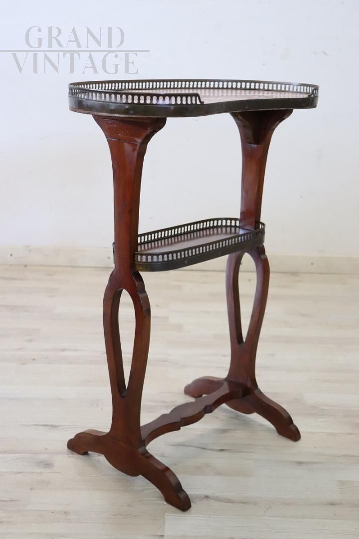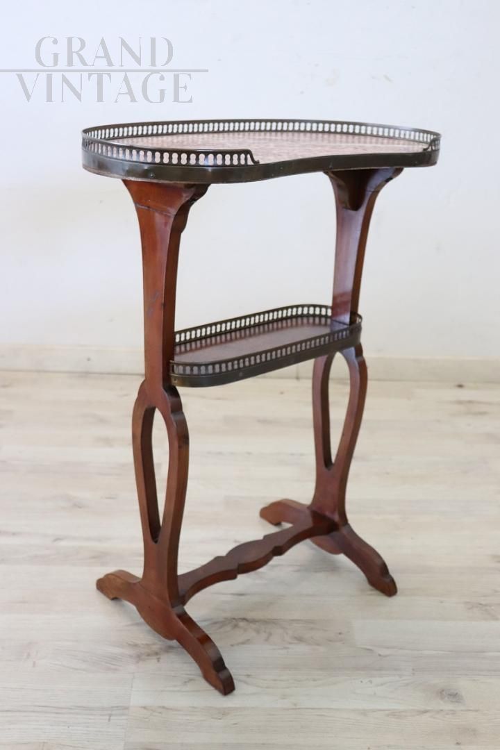A splendid and refined side table from Italy, dating back to the late 19th century, during the Napoleon III era. Crafted from walnut, the elegant red marble top has a distinctive "bean" shape. Its lines are simple yet refined, with a second small shelf underneath. The bronze frames add a distinctive decorative touch. Functionally, its compact size allows it to be easily integrated even into small spaces. Price negotiable.