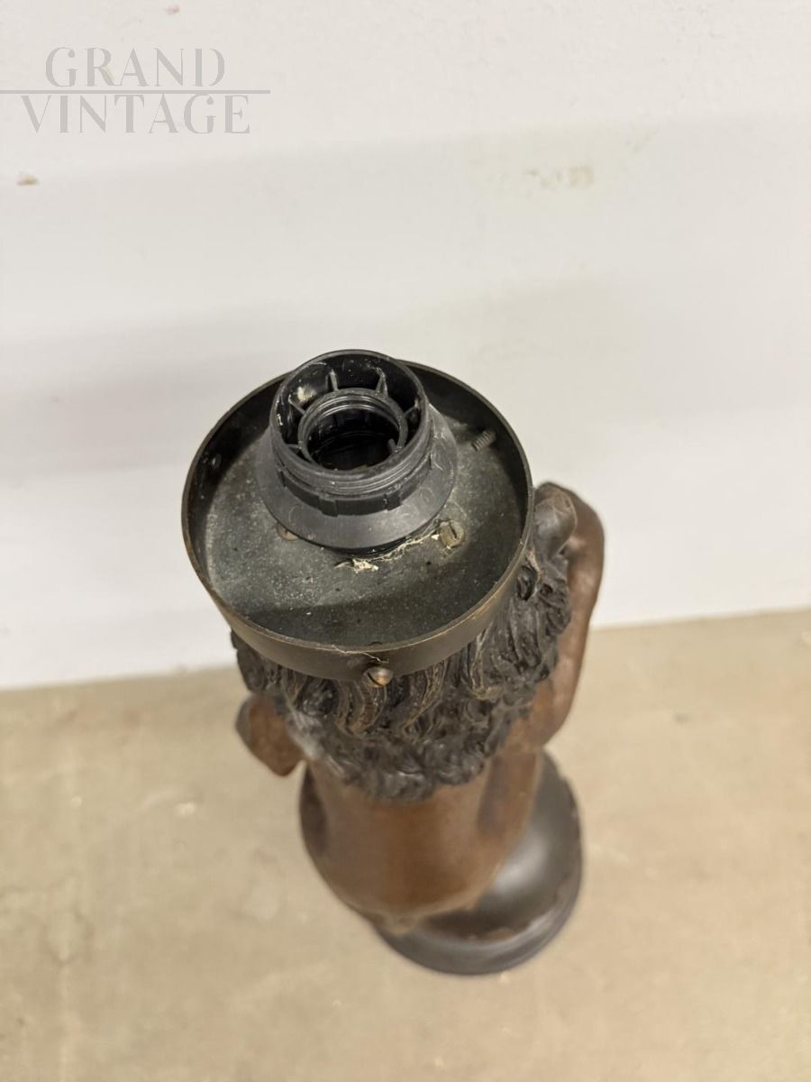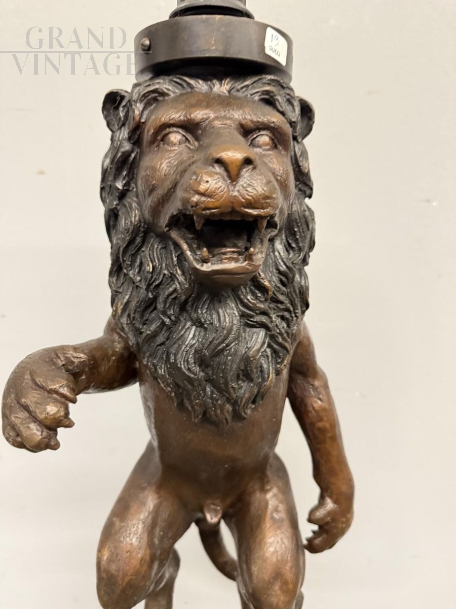 Bronze lion sculpture with provision for the positioning of a light bulb, made in the early 1900s, 82 x 30 cm.