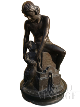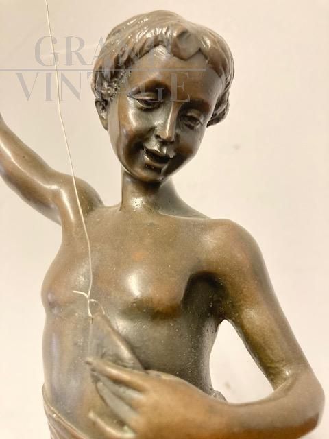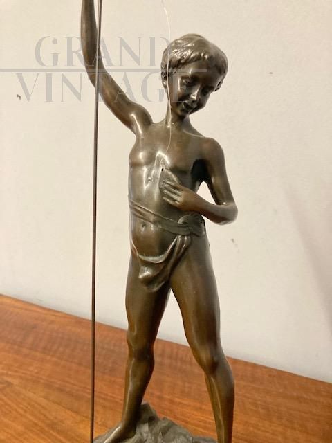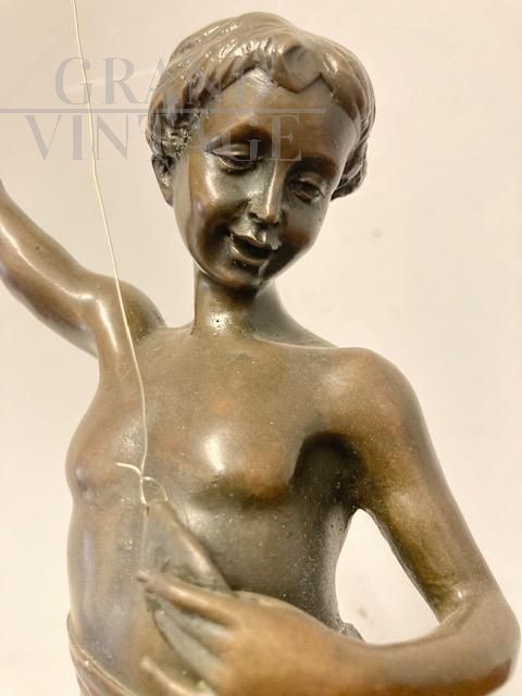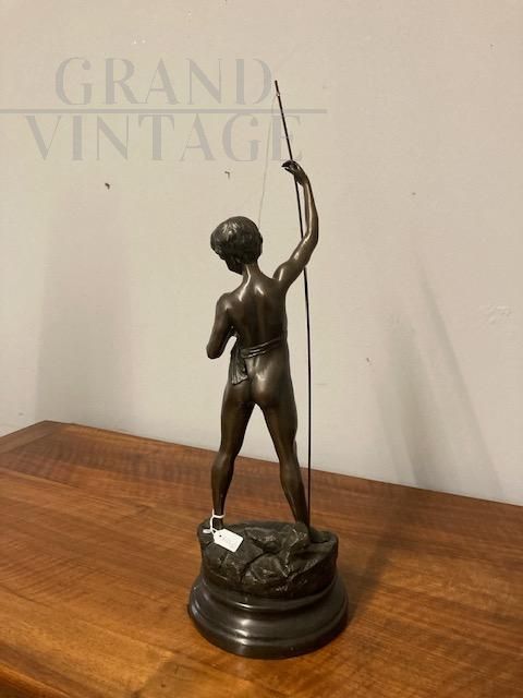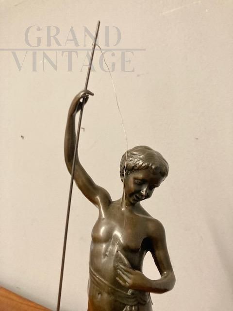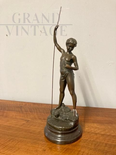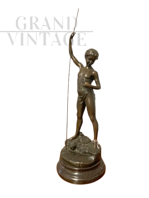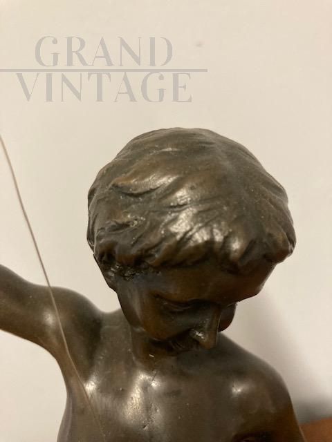 Antique bronze sculpture by Auguste Moreau with fisherman, end of the 19th century