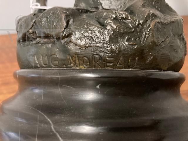 Antique sculpture by Auguste Moreau with a bronze fisherman on a black marble base, signed Auguste Moreau, from the late 19th century, in a very beautiful patina and in excellent condition.