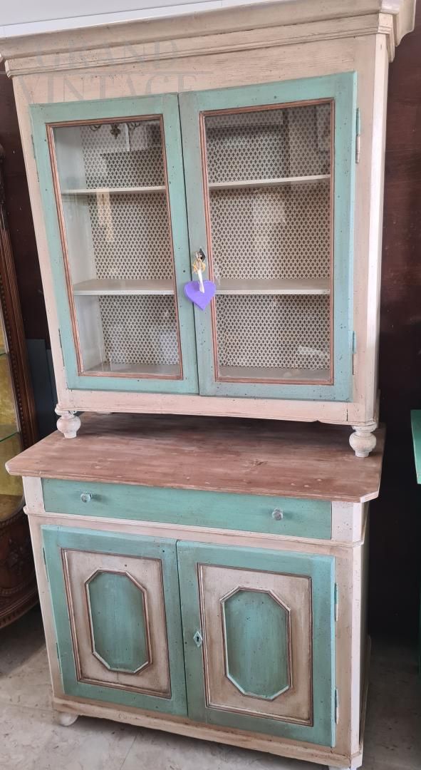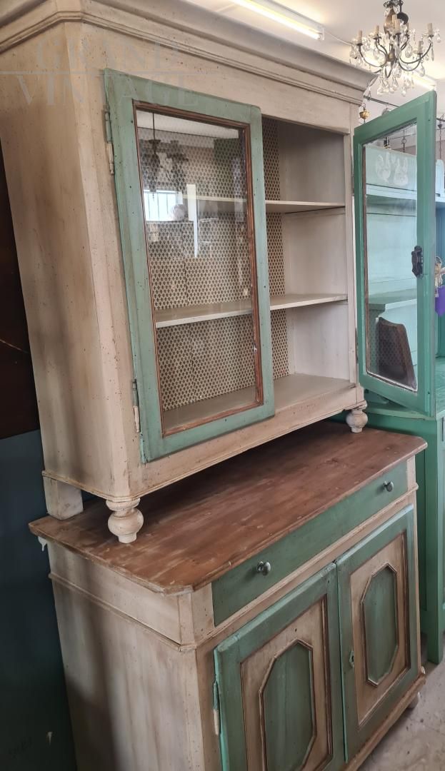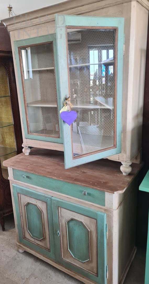 Antique buffet & hutch china cabinet cupboard from the end of the 19th century, restored and repainted in a shabby chic colonial style.