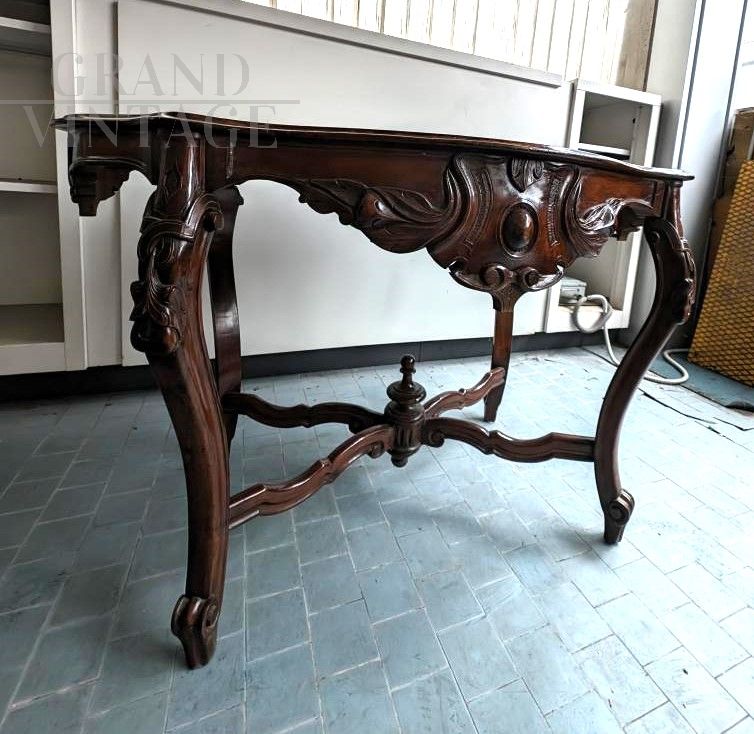 Antique biscuit shaped table with the typical shape of the top, made of walnut at the beginning of the 19th century, an authentic jewel of craftsmanship from the Louis Philippe era. Made with expert craftsmanship and characterized by the warm shade of walnut, this table embodies the style and elegance of the furniture of the time. Its oval shape makes it ideal for intimate gatherings or family dinners, while the intrinsic beauty of wood adds a touch of sophistication to any setting.